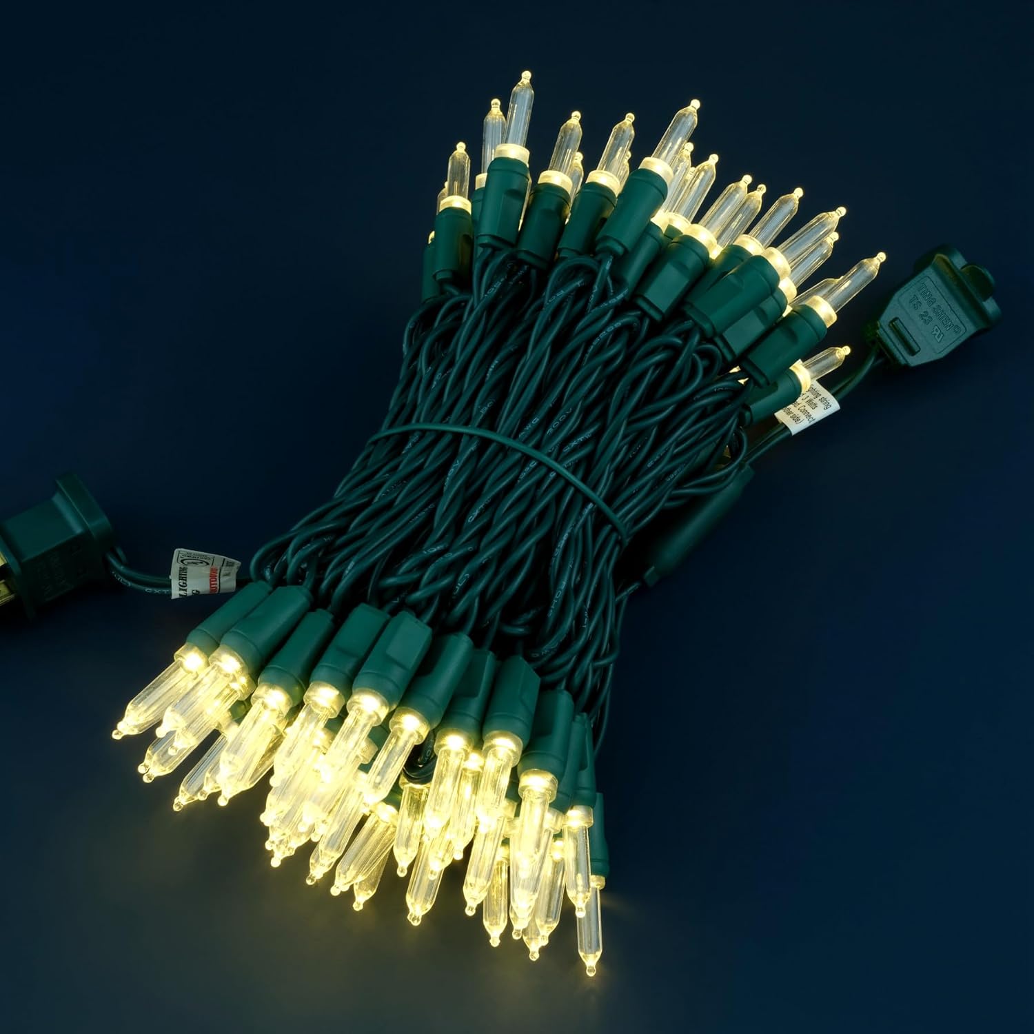100 Warm White One-Piece LED Christmas Lights, 33 ft Green Cord High Waterproof UL Certified T5 Outdoor String Lights (Warm White)