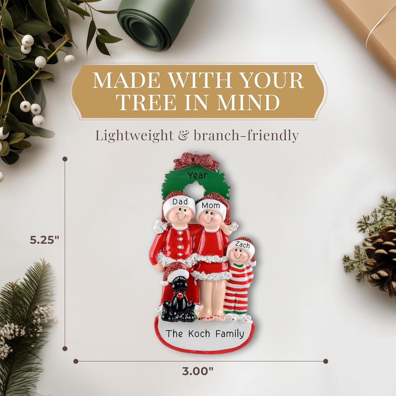 Personalized Family of 3 with Dog Ornament 2025 | Free 24h Customization | Christmas Ornaments for Tree | Custom Gift Wrapped Black Pet Keepsake for Dog-Lovers
