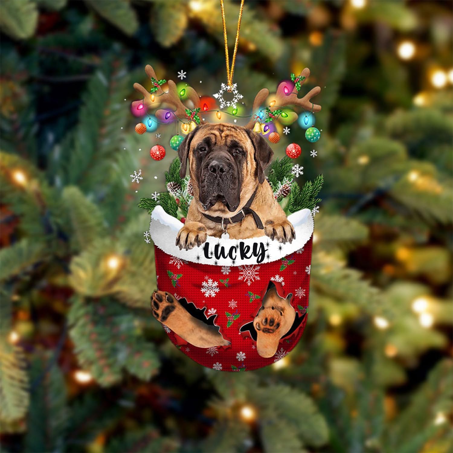 English Mastiff 1 Dog Christmas Ornament, English Mastiff 1 in Snow Pocket Christmas Tree Ornament, Dog Lovers Gift Idea Xmas, Christmas Decorations for Tree, Christmas Ornament Gift for Dog Lovers