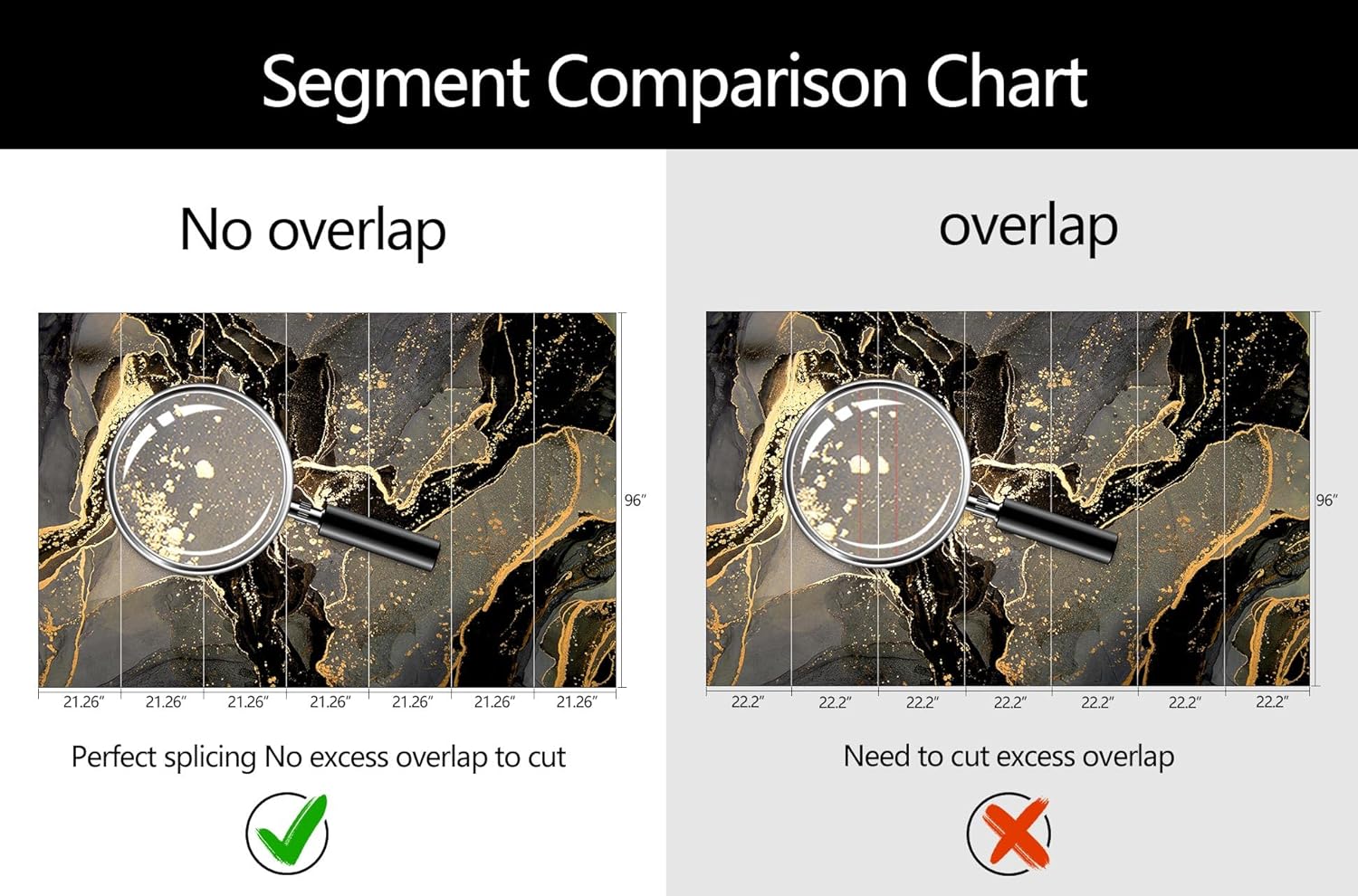 - Mural Size: The total size of this mural wallpaper is 149" x 96" / 378CM x 244CM (W x H), cut into 7 pieces, each measuring 21.26" x 96", for easy installation.