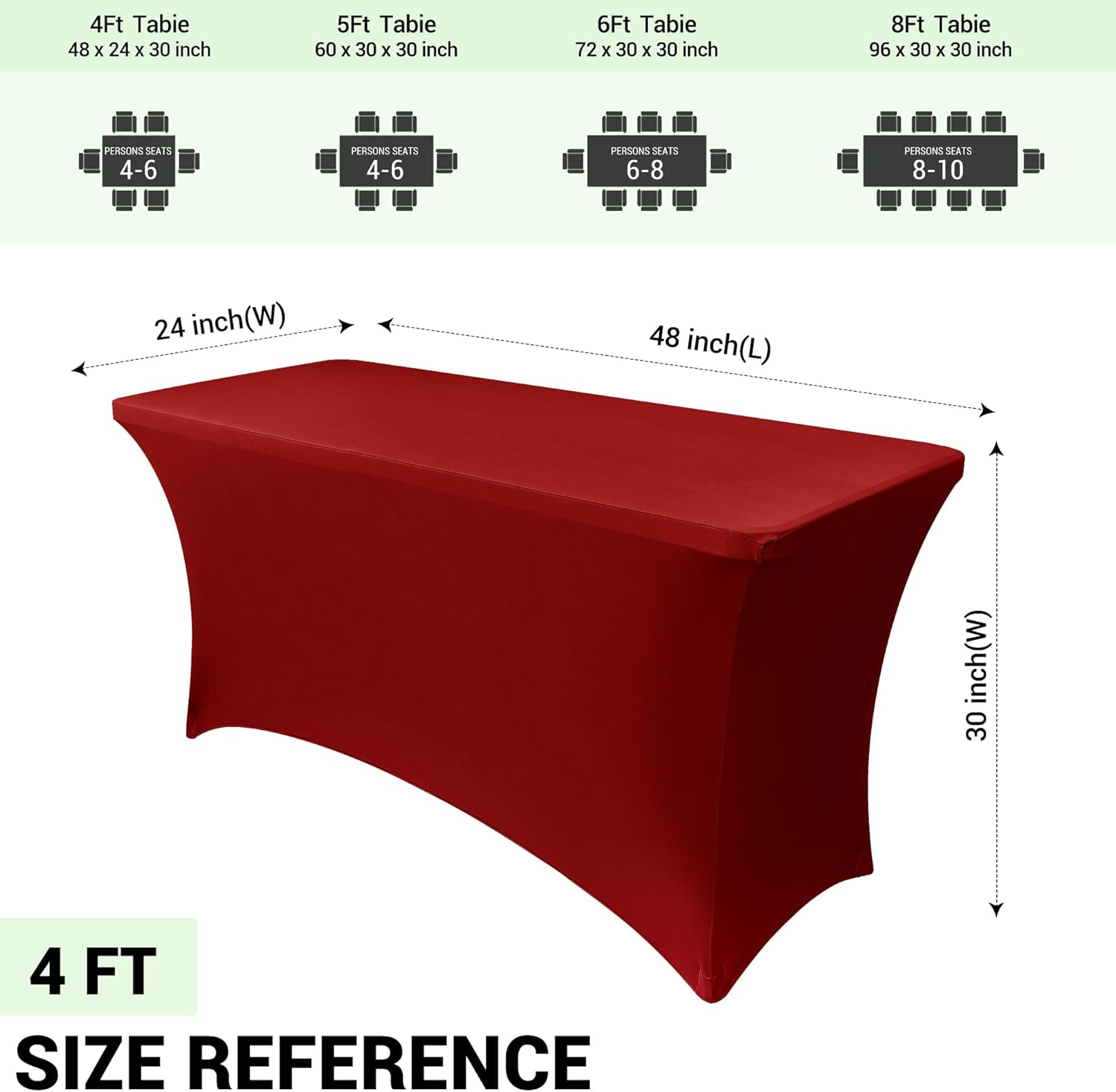 Obstal 4Ft Stretch Spandex Table Cover for Standard Folding Tables - 2 Pack Universal Rectangular Fitted Tablecloth for Party, Banquet, Events, Trade Show (Dark Red, 48L x 24W x 30H Inches)
