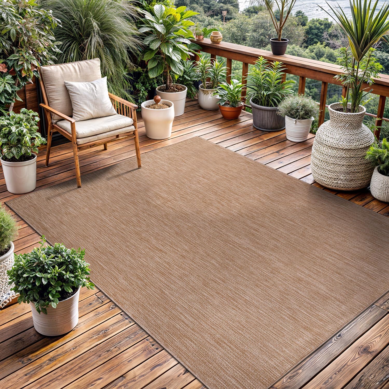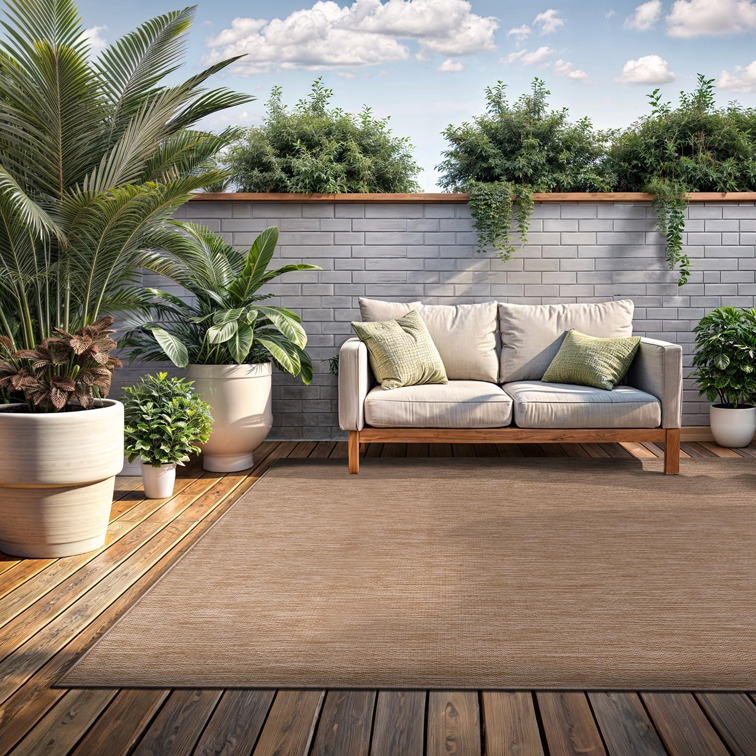 Washable Indoor Outdoor Rug 6x9 Weather Resistant Area Rugs Modern Solid Jute Rug for Porch Deck Balcony Backyard Patio Outside Carpet (6 X 9 Jute Beige)