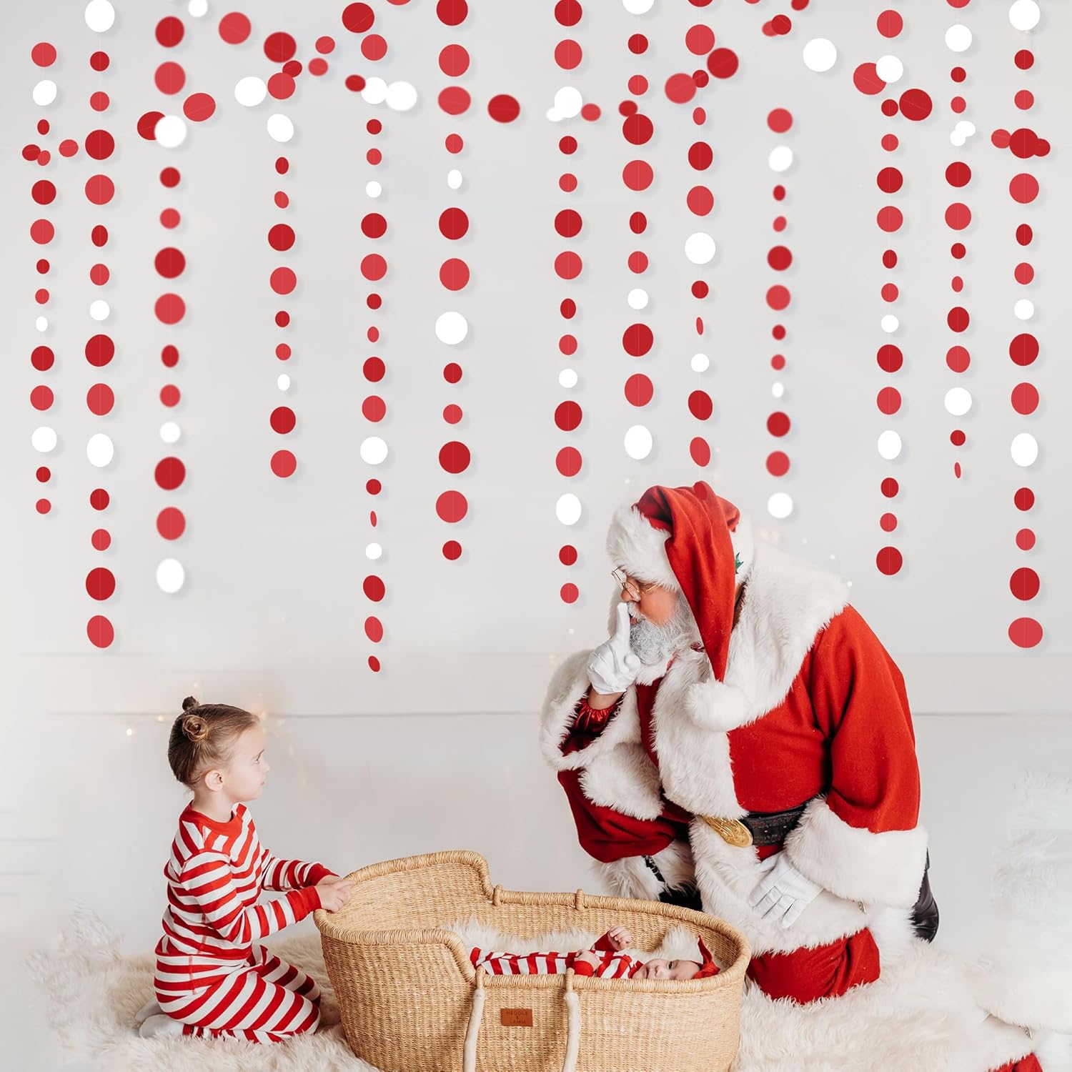 46 Ft Red Party Decorations Polka Dots Garlands Red and White Hanging Paper Circle Dots Streamer for Valentines Anniversary Birthday Graduation Wedding Christmas Holiday Bridal Shower Party Supplies