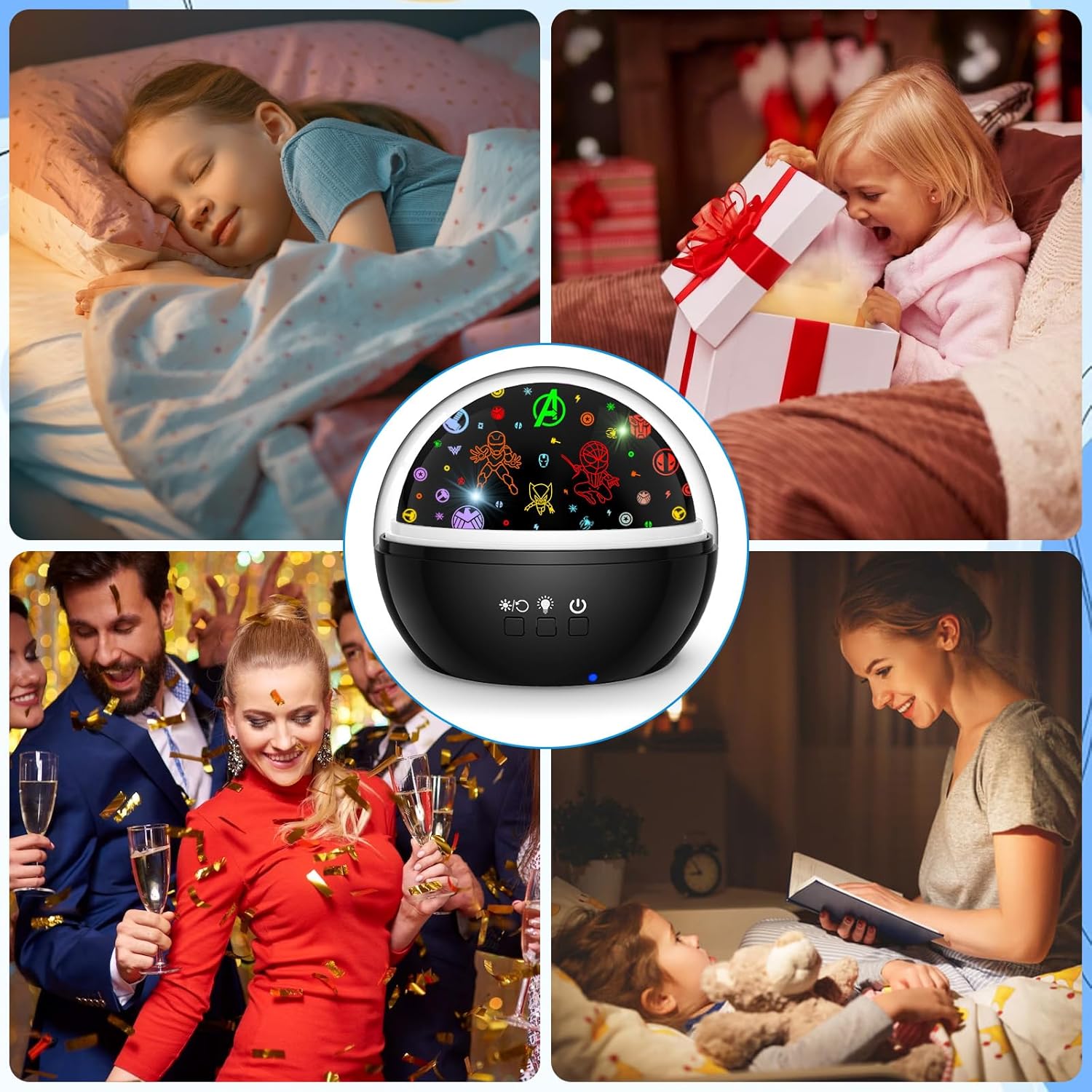 - Two Film Themes to Select: a cool superhero theme and a fantastic starry moon theme, our kids can change it freely. it brings joy and wonder to your child's space. it can decorate the baby's room, nursery, and bedroom decoration. It can accompany boys and girls in growing up to overcome the scare of darkness, best gift for little baby