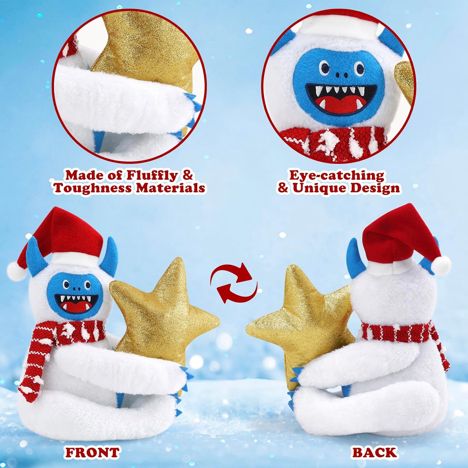 Bigfoot Snowman Christmas Tree Topper Decorations with Glitter Star Xmas Ornaments Home Decor 3D Wreath Attachment Winter Holiday Festive Gift Fits for Small 3-4ft Tree Fabric