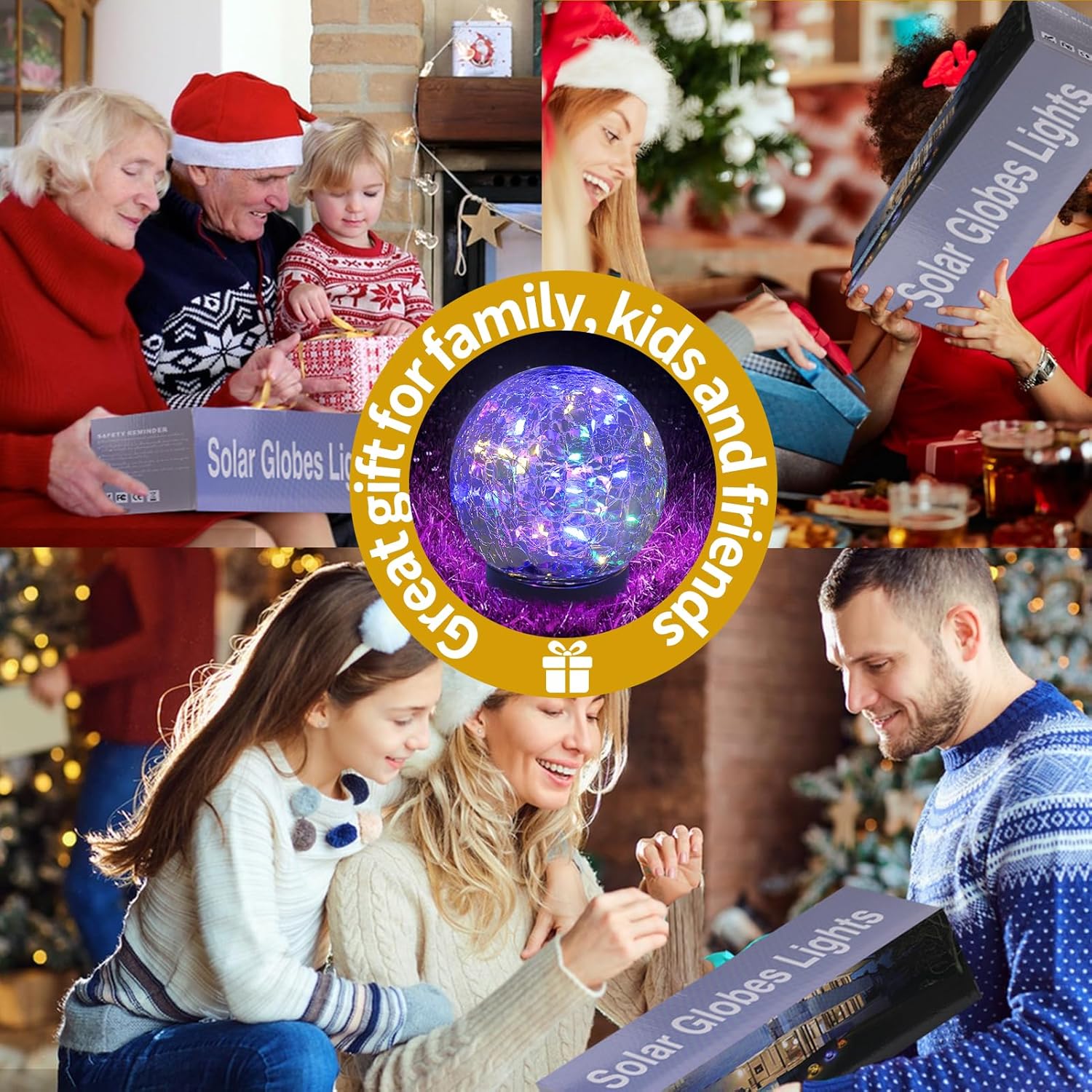 Solar Globe Lights Outdoor Waterproof-Solar Balls for Garden-Cracked Glass Ball Lights Outdoor-Solar Orbs for Outside-Decorations for Patio and Yard Lawn Backyard Decor