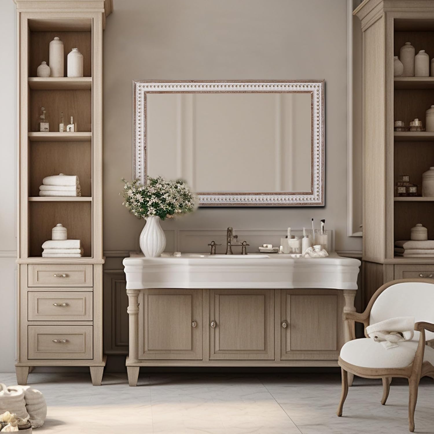 - Rustic Farmhouse Charm: Crafted from high-quality wood, this wall mirror rectangle brings a rustic farmhouse aesthetic to your home decor. The wood grain combined with the beaded detailing adds warmth and texture, making it a standout piece in any room while maintaining a relaxed, vintage-inspired vibe