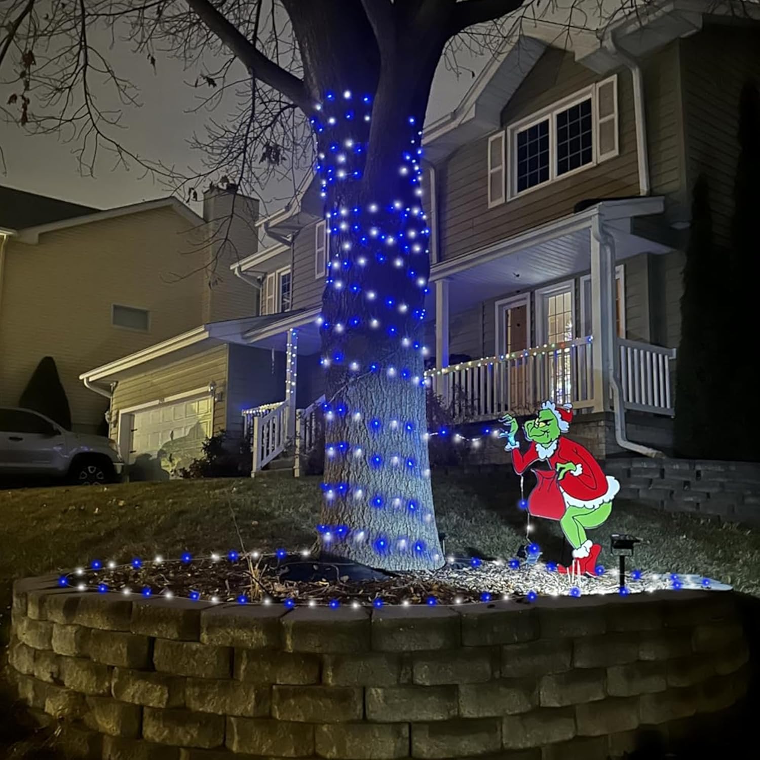 - Solar Powered: No outlet, no running extension cords, no maintenance! Energy-saving and environmentally friendly, charging quickly in direct sunlight. But not as bright as AC powered thick tube rope lights.