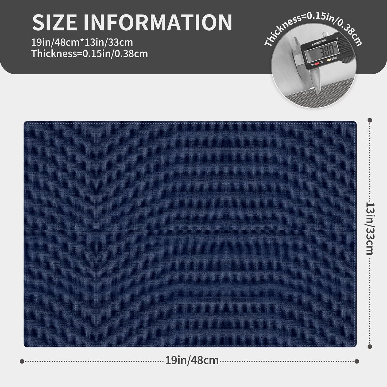Cloth Placemats, Set of 6 Heat-Resistant Cotton Linen Blend Double Layered Machine Washable Place Mats, Wrinkle Free Thick Fabric Dining Table Mats for Indoors & Outdoors (Navy Blue, 6)