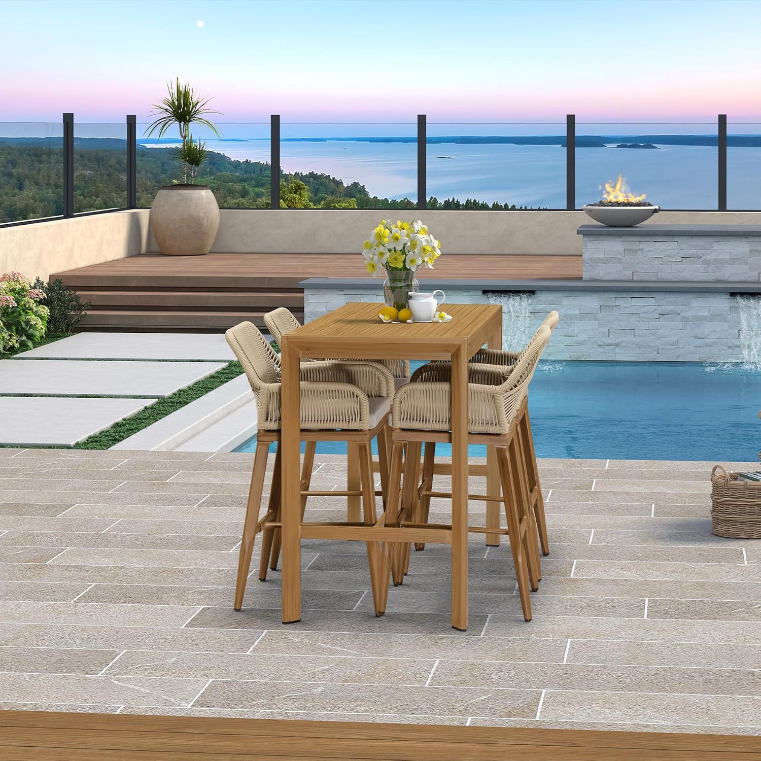 - Modern Style: The minimalist lines that outline the outdoor bar table and its tapered legs characterise its unique elegance, creating a perfect balance between classic and modern.