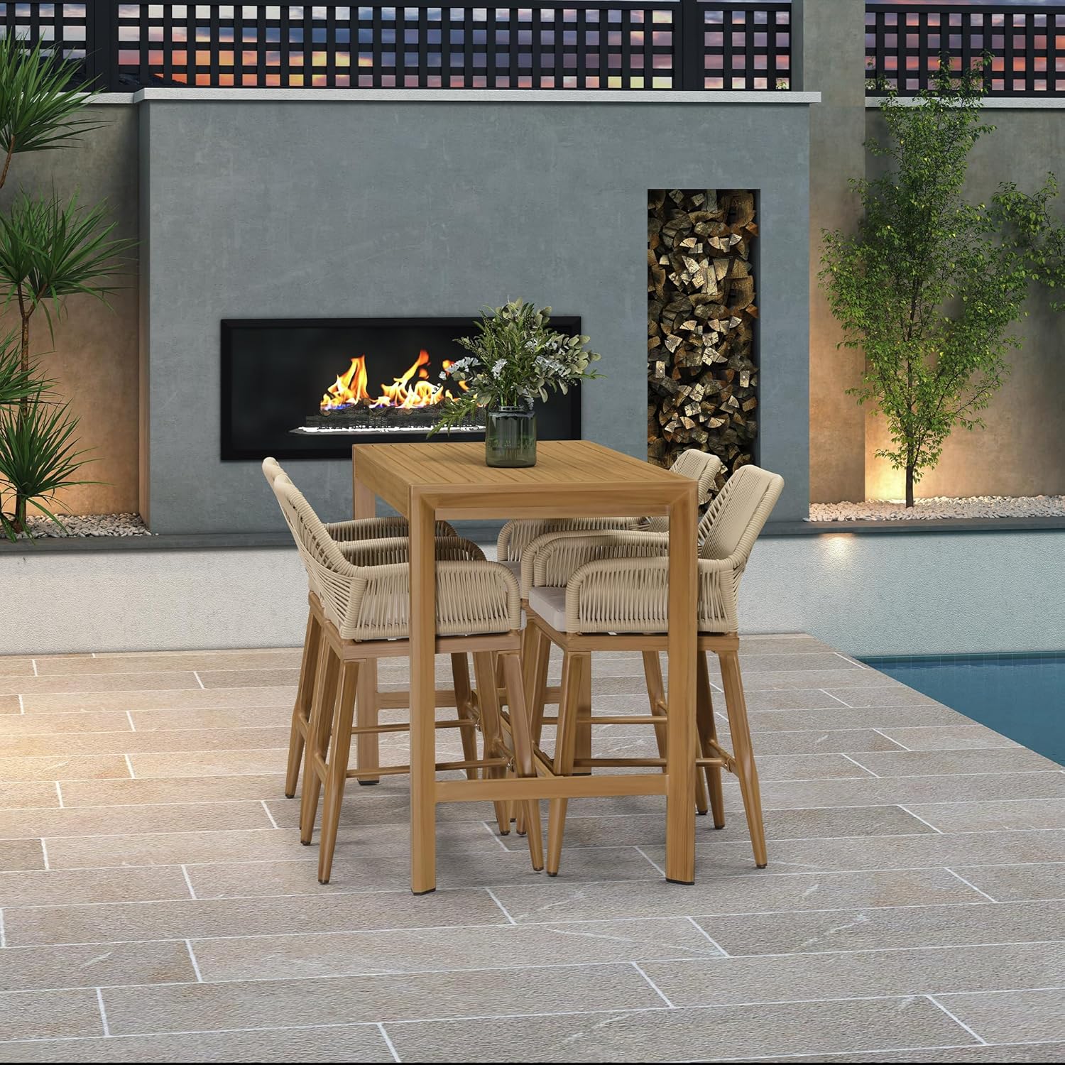 - Modern Style: The minimalist lines that outline the outdoor bar table and its tapered legs characterise its unique elegance, creating a perfect balance between classic and modern.