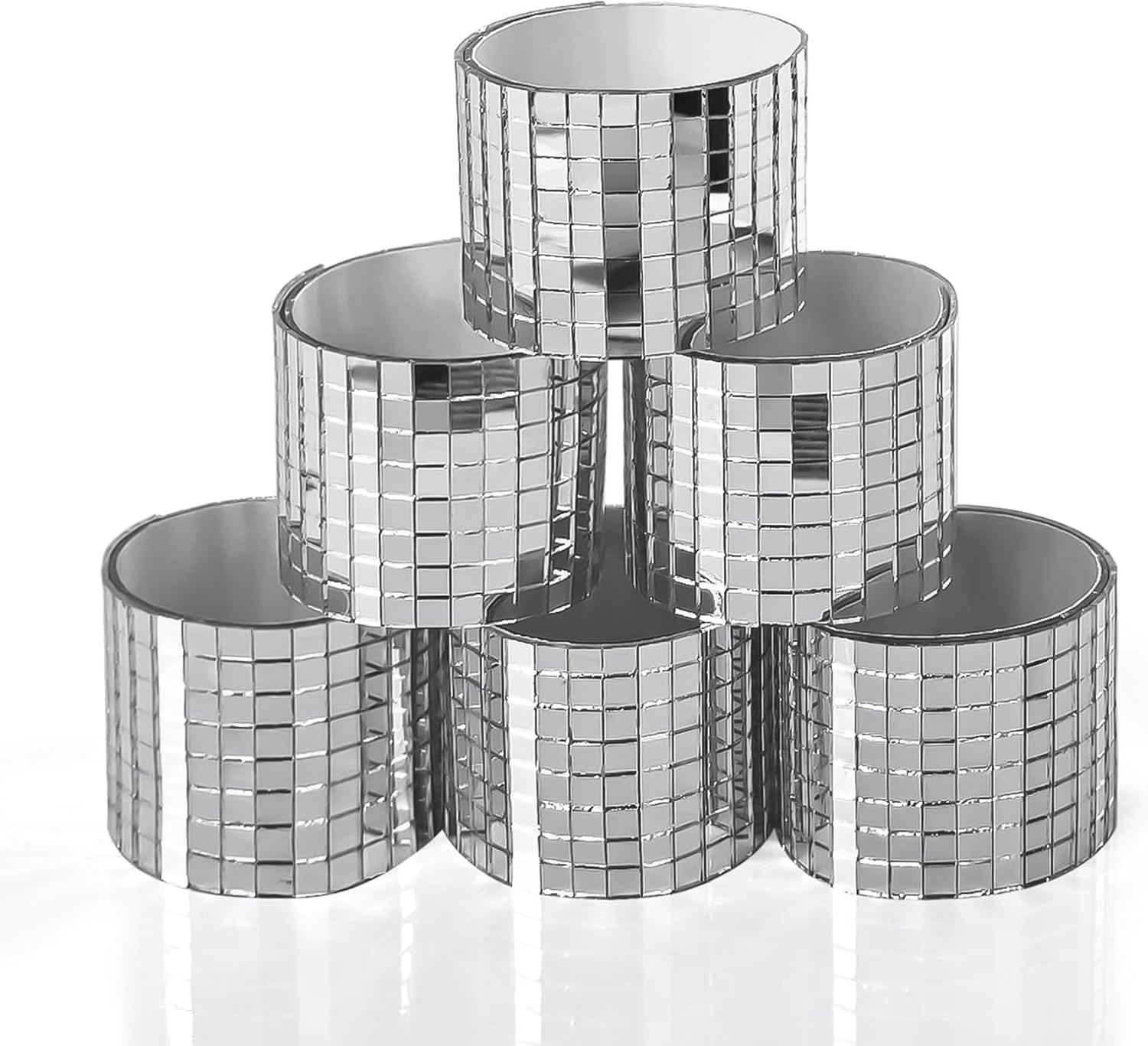 Art3dwallpanels 6 Pack Self-Adhesive Glass Mirror Mosaic Tiles 2364 Pieces Small Square Mirror Tiles Sticker for DIY Craft Decoration, Disco Ball Silver