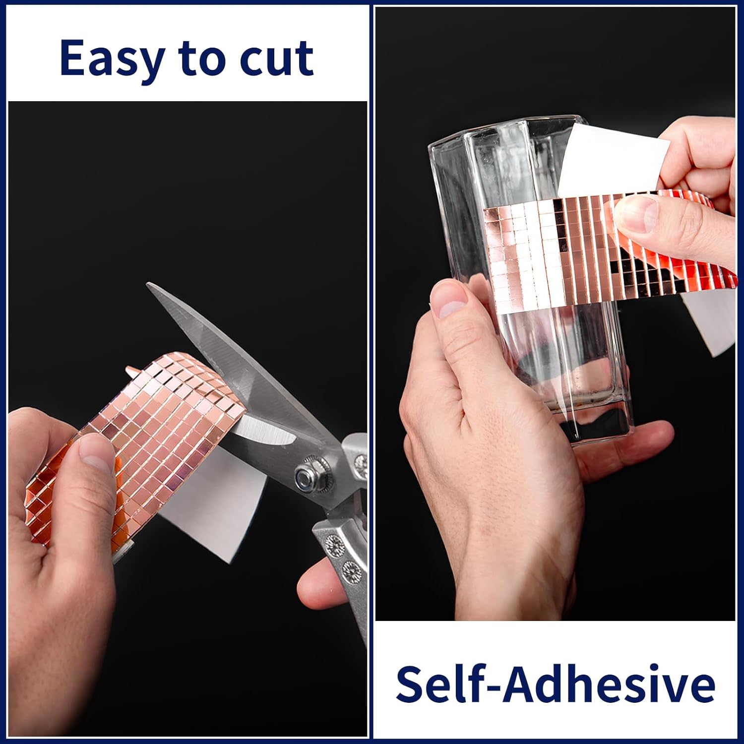 Art3dwallpanels 6 Pack Self-Adhesive Glass Mirror Mosaic Tiles 2364 Pieces Small Square Mirror Tiles Sticker for DIY Craft Decoration, Disco Ball Rose Gold