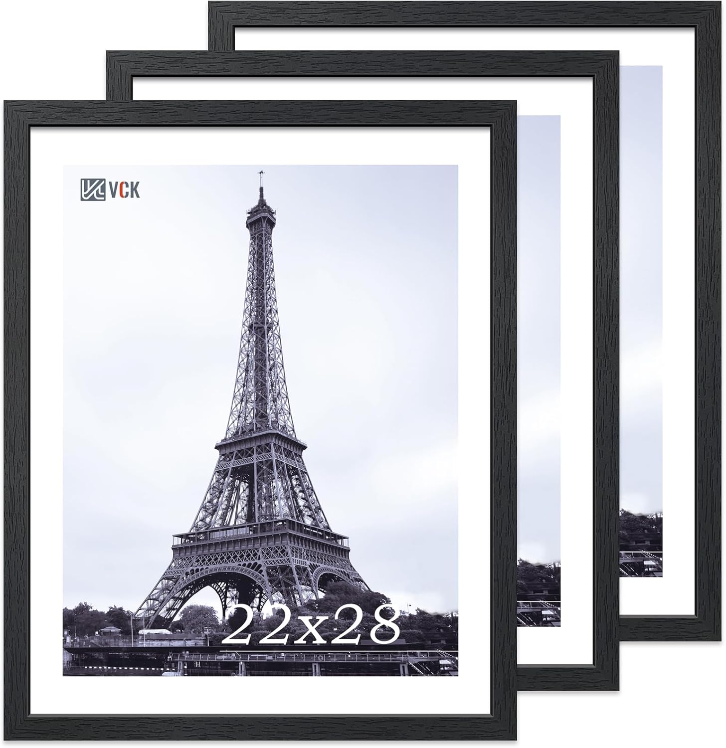 VCK 22x28 Poster Frame Set of 3 - Black,Solid Wood Picture Frames, Textured Exclusive Wall Gallery Frame