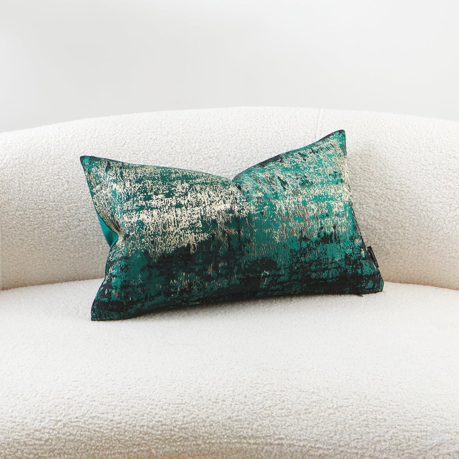 THE-TINOART Luxury Neon Moss Green Jacquard Pillow Cover 12x20 - Reversible Gold Threaded Embroidered Design, Holiday Throw Pillow Case for Couch, Sofa, Bed Décor