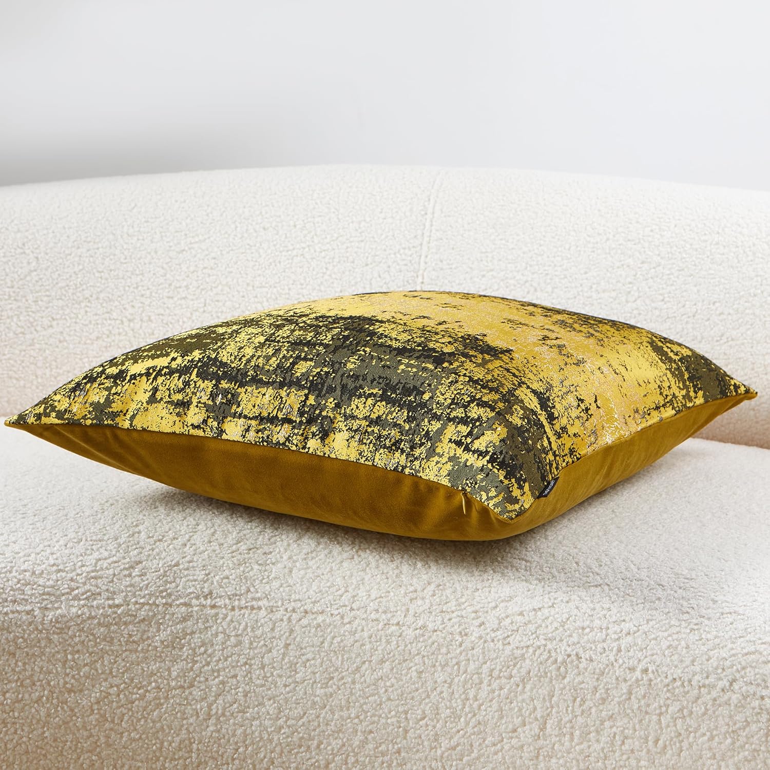 - Premium Jacquard & Velvet Pillow Cover : Crafted with luxe 70% polyester 30% viscose jacquard weave in Sun Gold & Black - a striking interplay of warm metallic gold and rich onyx threads that creates a contemporary luxe glow. The reverse features 100% polyester cream beige velvet in sumptuous cloud-soft texture. Two looks in one - Instantly elevates sofas, beds, or accent chairs—perfect for holiday glamour or everyday luxury.