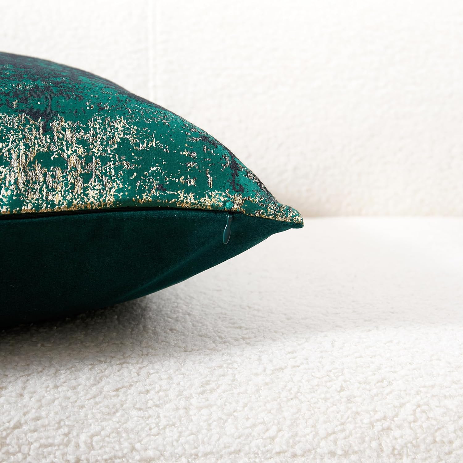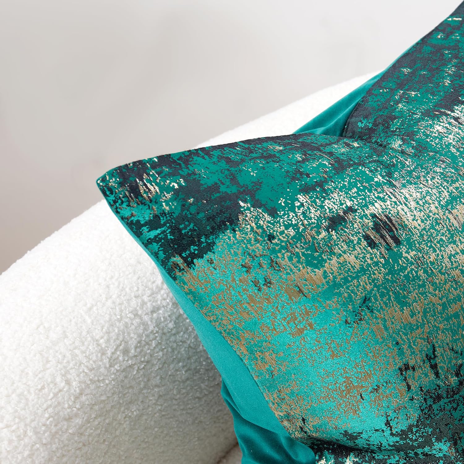 - Premium Jacquard & Velvet Pillow Cover : Crafted with luxe 70% polyester 30% viscose jacquard weave in Neon Moss Green - a vibrant, tech-inspired hue with woven gold threads that emit a sophisticated metallic radiance. The reverse features 100% polyester cream beige velvet in sumptuous cloud-soft texture. Two looks in one—Instantly transforms sofas, beds, or accent chairs from daytime chic to evening glam.