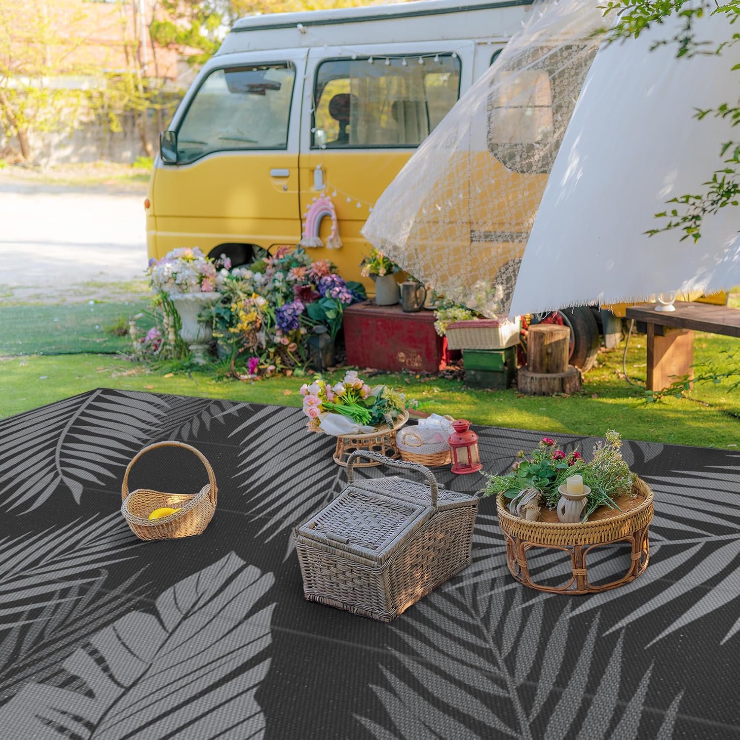 - Perfect Choice For RV Camping: Woven from lightweight plastic straws, these RV outdoor rugs fold compactly to fit in the included carry bag. This portable waterproof outdoor rug is easy to carry, with 4 corner loops and stakes to secure it. Using this camper rug reduces travel fatigue and adds plenty of space for fun — also a stylish touch for fall decor when setting up your campsite