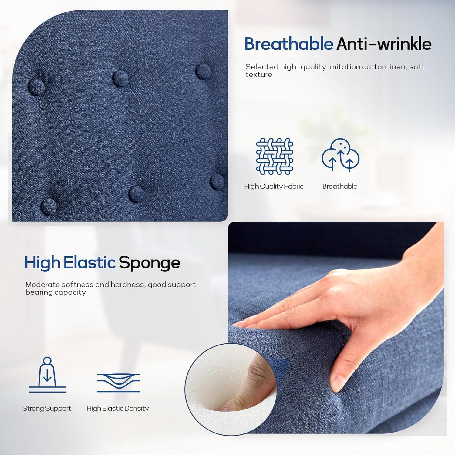 HUIMO Button-Tufted Accent Chairs Set of 2,Upholstered Reading Living Room Chair,Mid Century Modern Chair with Linen Fabric, Club Chair,Comfy Arm Chairs for Living Room,Bedroom,Dark Blue