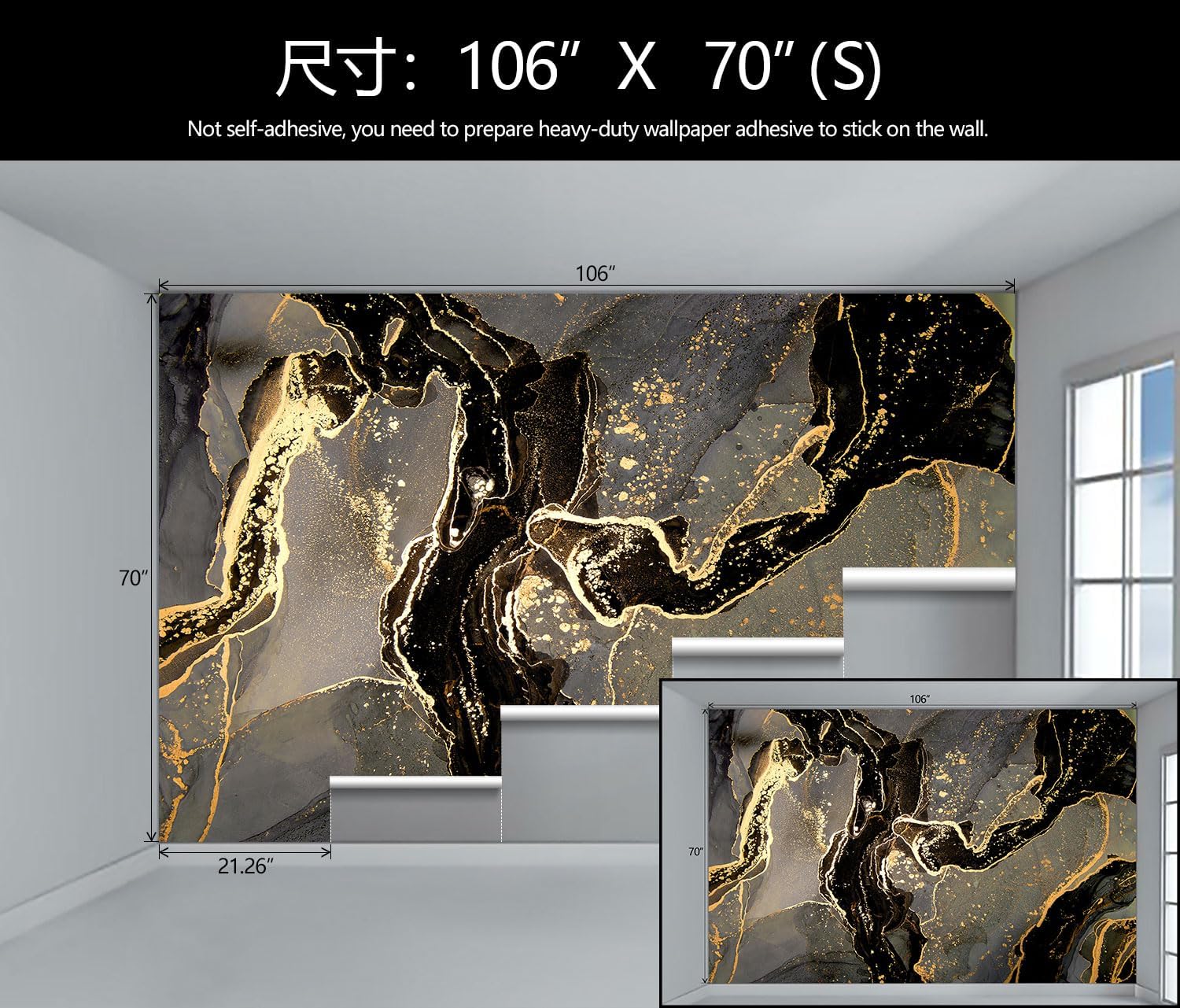 WFBHUA-Black and Golden Marble Wallpaper Modern Large Art Photo Wall Murals Living Room Bedroom Office (Not Peel and Stick)