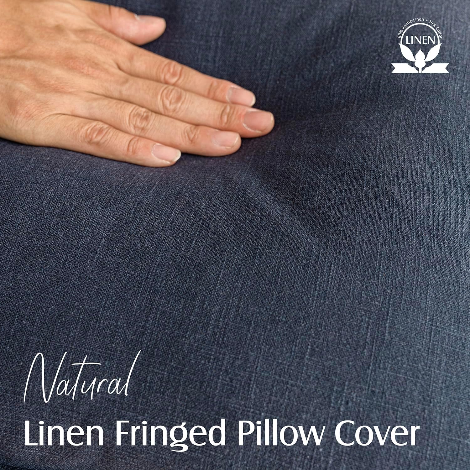 Foindtower Set of 2 Decorative Linen Fringe Throw Pillow Covers Cozy Boho Farmhouse Cushion Cover with Tassels Soft Accent Pillowcase for Couch Sofa Bed Living Room Home Decor, 22×22 Inch, Navy Blue