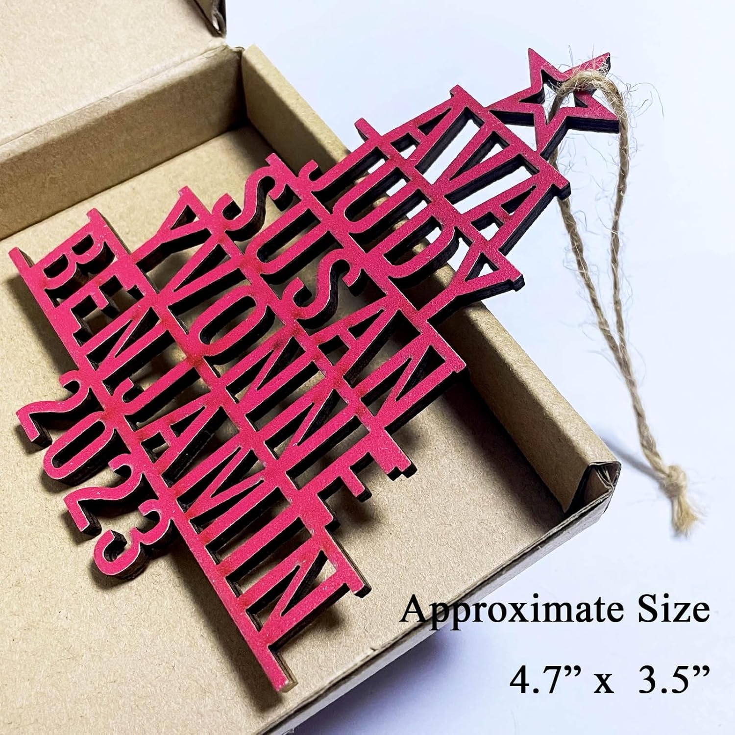 - Perfect Size And Easy To Hang-Measuring at 5.9" x 3.9"οΌthis ornament is the ideal size to adorn your Christmas tree. PS:The name will be rearranged from longest to shortest to make the Christmas tree shap.