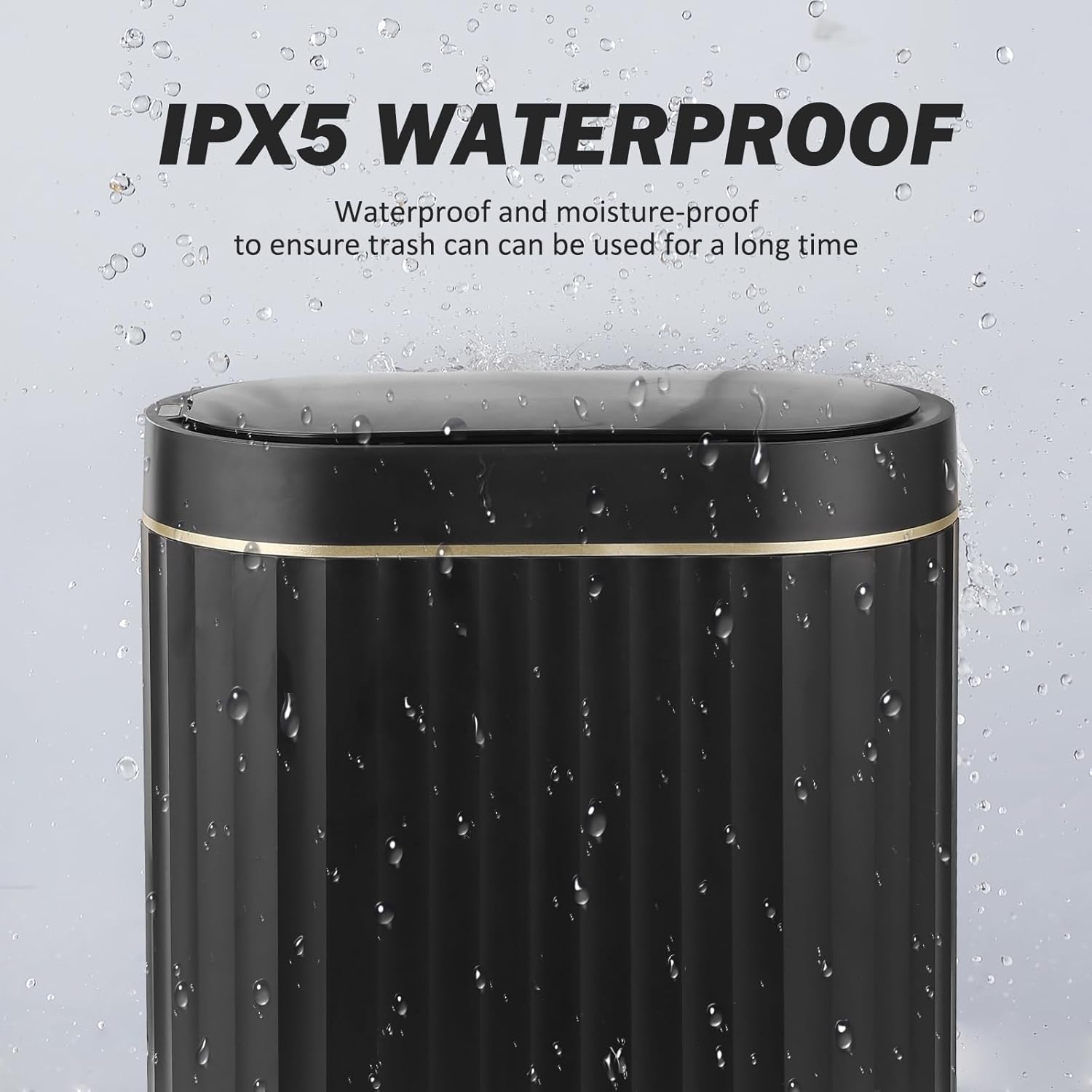 ELPHECO Black Bathroom Trash Can with Lid 2 Gallon Sensor Trash Bin, Automatic Narrow Garbage Can, Waterproof Smart Trash Can, Slim Motion Sensor Waste Bins for Bathroom, Living Room, Office