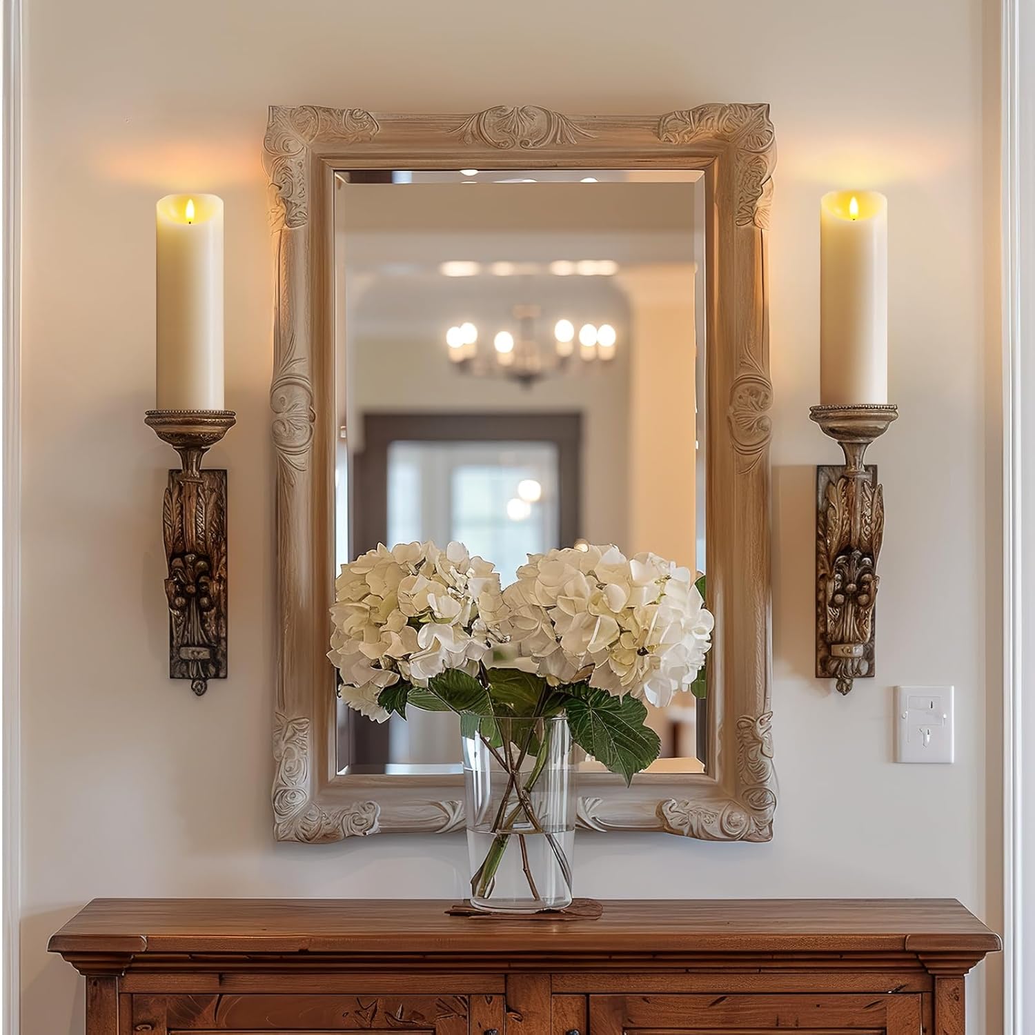 5plots 9" x 3" Flickering Flameless Candles - Battery Operated Wax LED Candles - Amber Yellow Light with Remote and Timers Set of 2, Ivory, for Home Decor, Candle Sconces