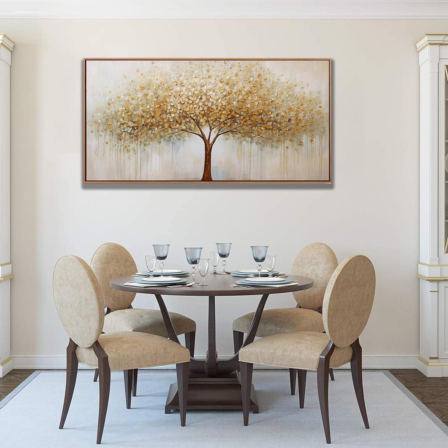 Abstract Wall Art Gold Tree of Life Framed Artwork Canvas Painting Textured Tree Pictures Wall Decor for Living Room Bedroom Dining Room Home Office Decor 20"x40" with Framed