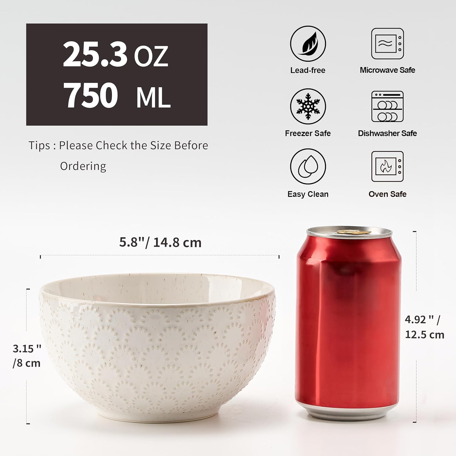 - [šš¢ššš”šš§ šš®š¬š šššÆš] The cereal bowls measure 5.8" wide and has a capacity of 25.3 fluid ounces, which is perfect for individuals eating alone. The ceramic bowl set can be used as a meal prep bowl, a dining bowl, or used for portioning at parties. This bowls set of 4 is sure to become a staple in your kitchen.