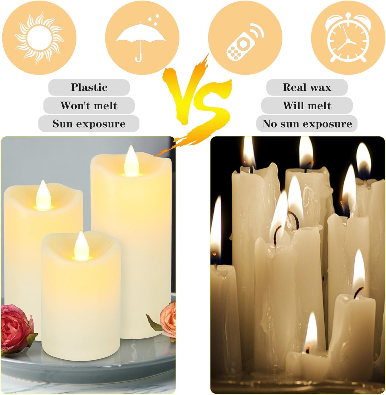 - 【VERSATILE BATTERY CANDLE SET】3 exquisite led candles(D 2.95" x H 4"/5"/6") & 1 remote with timer function. Great decor for parties, barbecues, weddings, holiday and churches