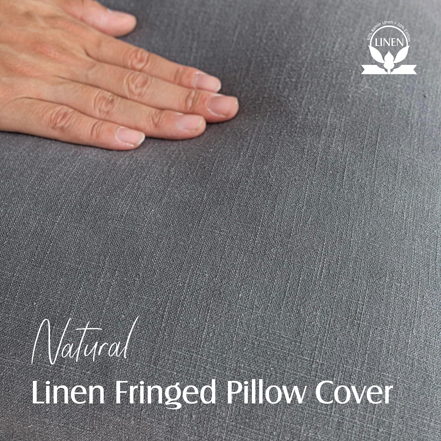 Foindtower Set of 2 Decorative Linen Fringe Throw Pillow Covers Cozy Boho Farmhouse Cushion Cover with Tassels Soft Accent Pillowcase for Couch Sofa Bed Living Room Home Decor, 22×22 Inch, Gray