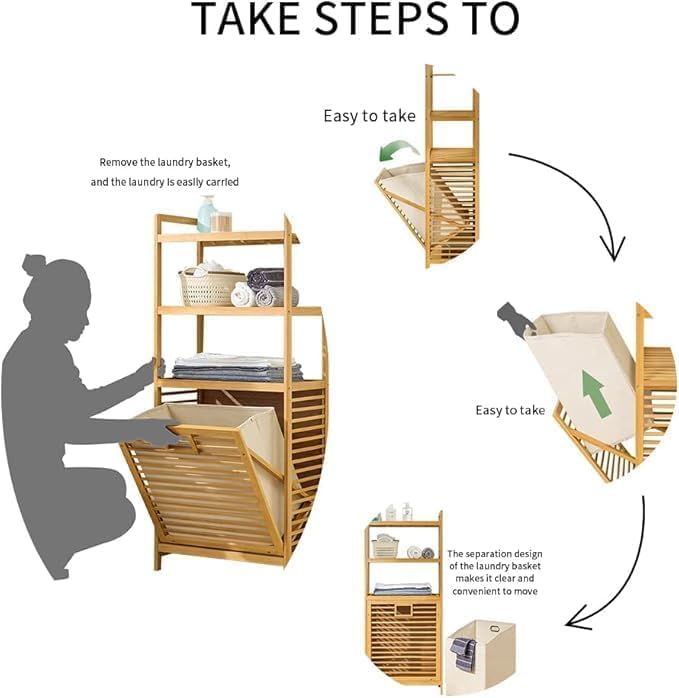 - 【Tilt-Out Laundry Basket】Foldable laundry storage cabinet features a tilt-out design that helps you to keep your laundry hidden away and prevents the spread of odors, saving more space and give you a comfortable and tidy room.