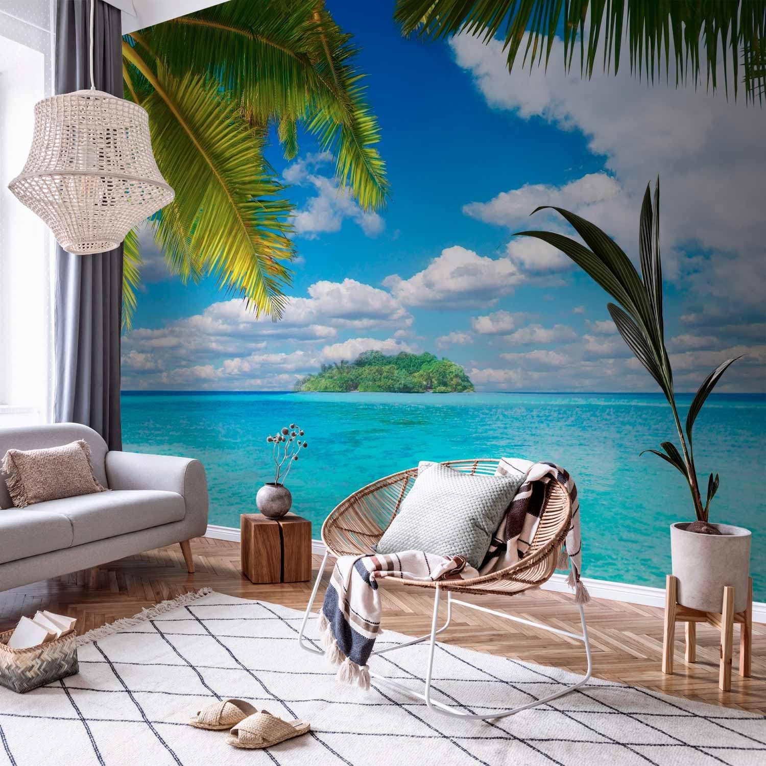 artgeist Wall Mural Peel and Stick Nature 212x98 in - XXL Self-Adhesive Corner Wallpaper Removable Large Sticker Foil Angle Wallpaper Holiday Lagoon Palms n-A-10068-a-a