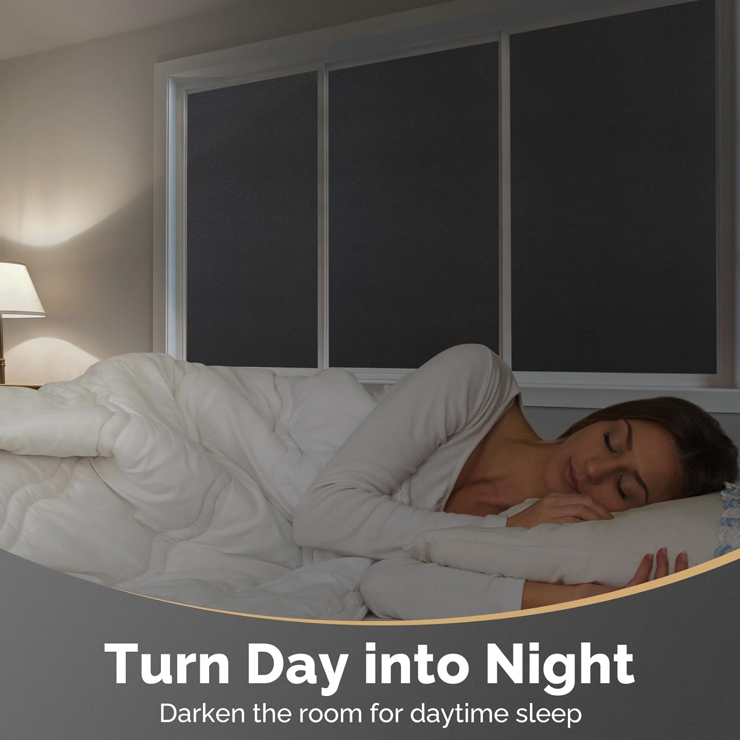 - 100% Light Blocking: Whether it's day or night, the blackout window films effectively block out bright light, creating a peaceful and comfortable haven for your home or office and protecting you from irritating sunlight and harmful artificial light. Not only does this promote better sleep and increased productivity, but it also helps reduce stress and improve quality of life