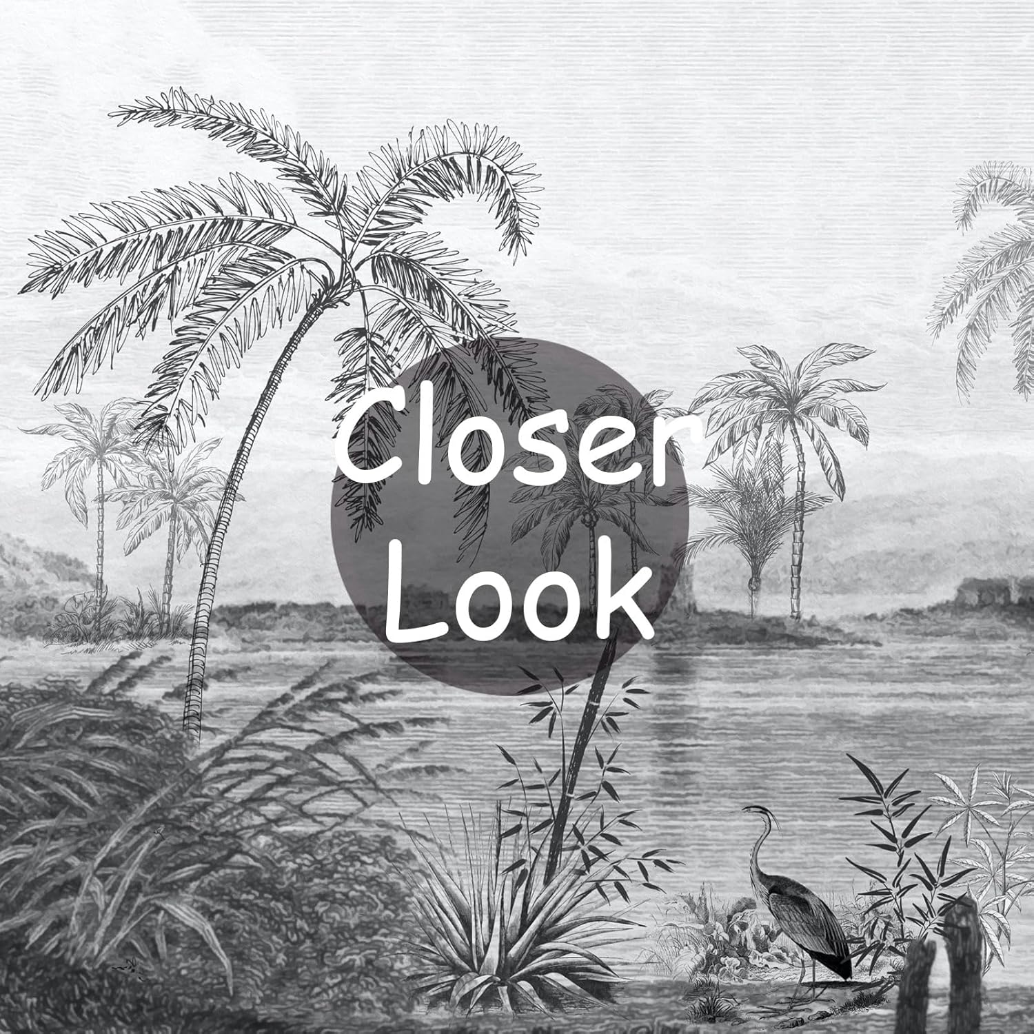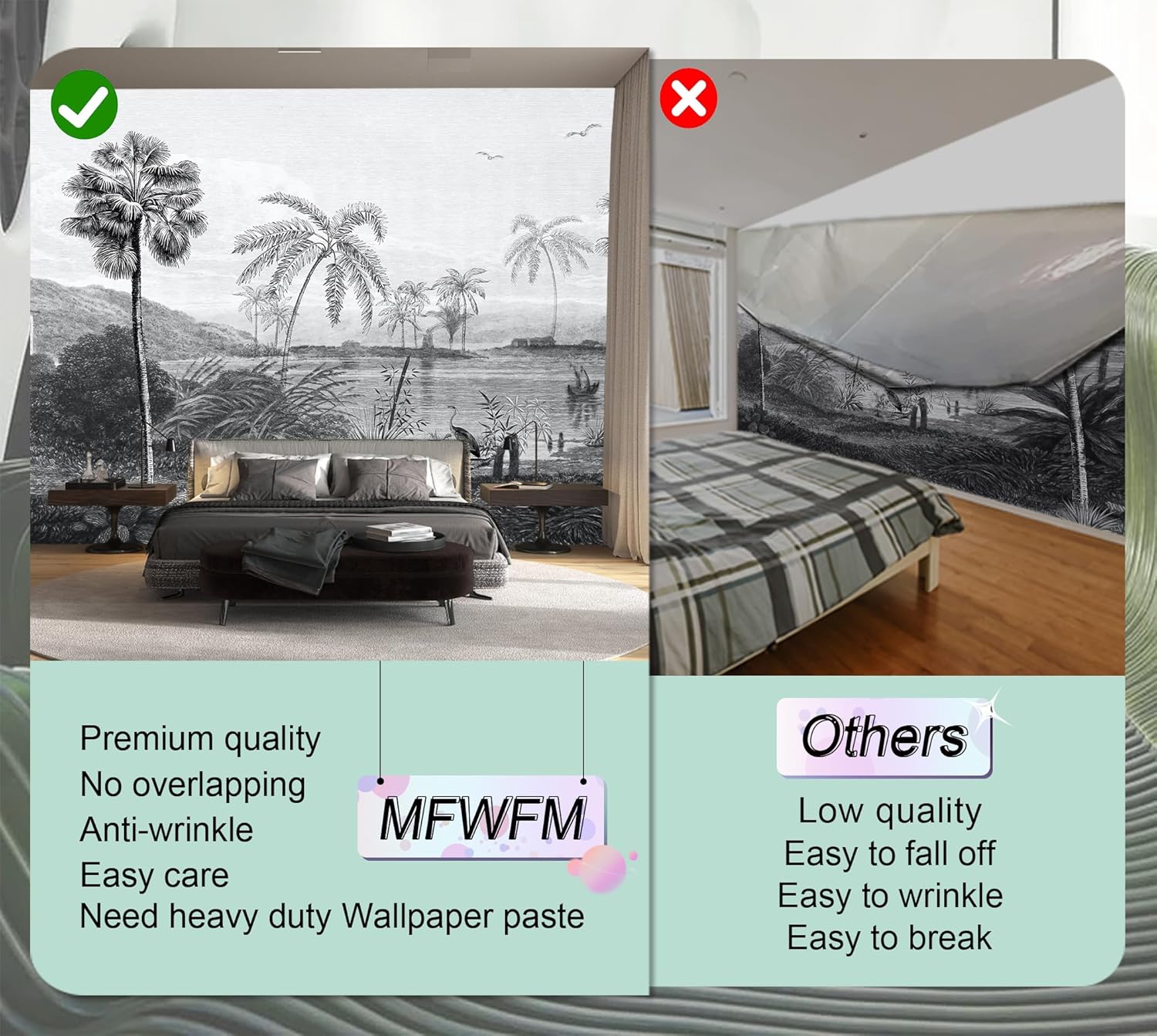 Vintage Black and White Forest Wallpaper Hand Painted Palm Tree Wall Mural for Bedroom Living Room (Not Peel n' Stick)