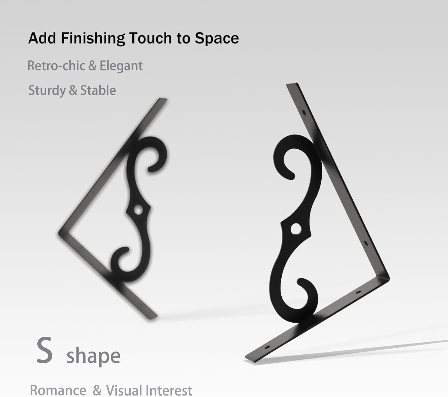 • 【Add Finishing Touch to Space】Mid-century design adds a retro-chic vibe to your home. Rusticity wood grain and exquisite S-shaped iron brackets flaunt visual interest and romance. They are full of character and enhance the texture of the space. A classy way to display your beloved decorations