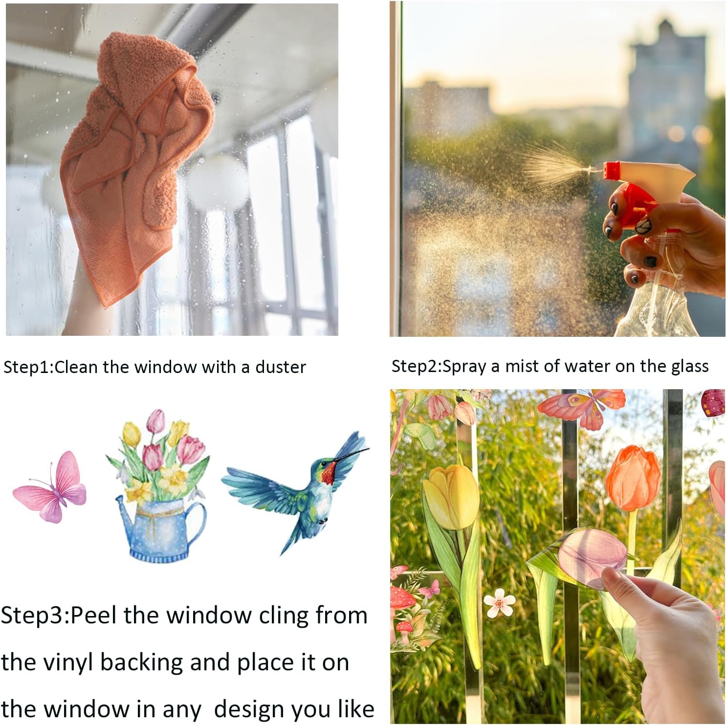 83 PCS Summer Window Clings Spring Flower Window Stickers Decorations for Glass Windows, Easter Tulip Butterfly Flower Window Decals