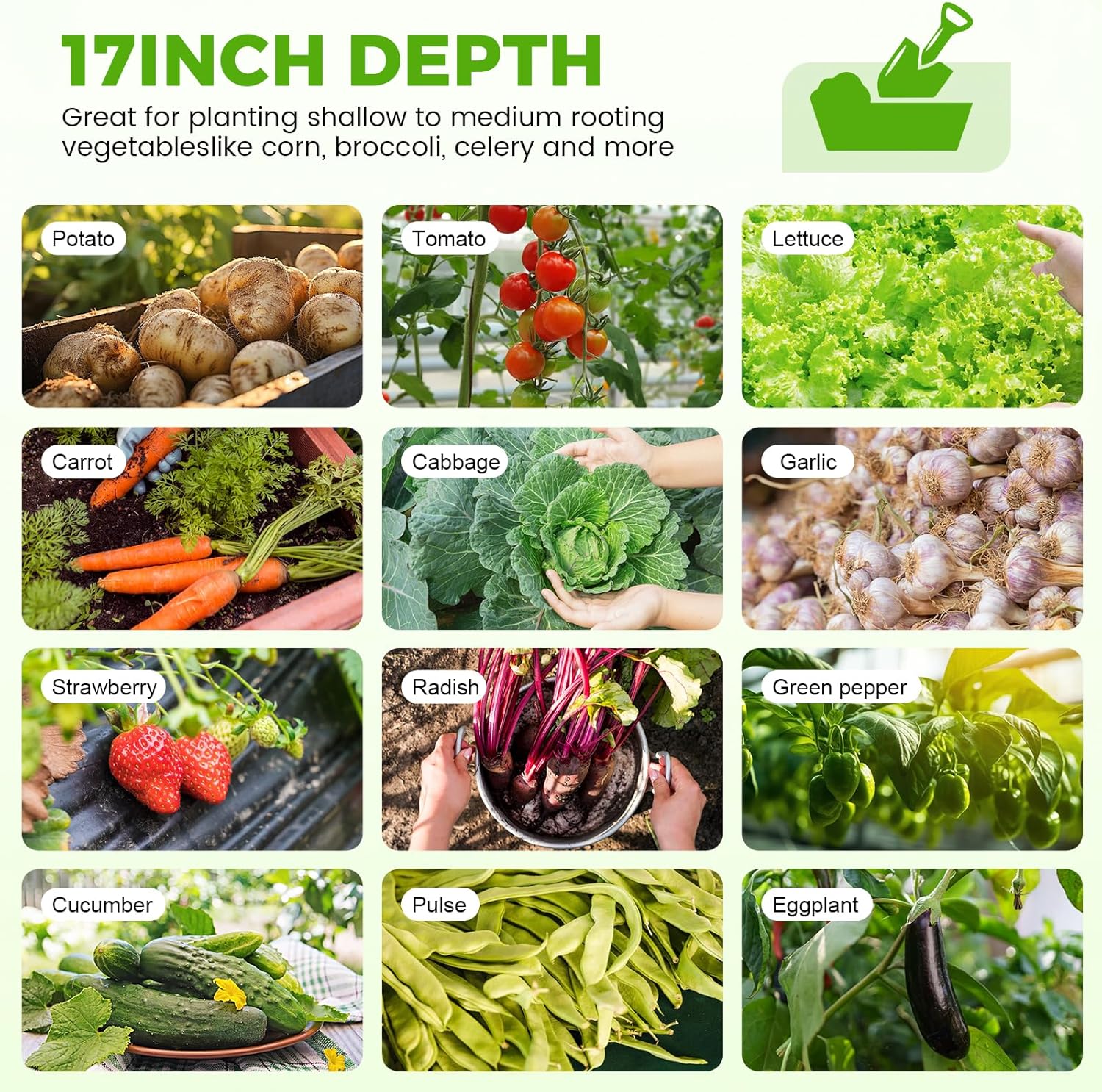• 【18'' Growing Depth】Measuring 48"(L) x 24"(W) x 18"(H), the metal raised garden bed holds 89 gallons of soil and provides extra large growing space for vegetables, fruits, flowers and other plants.