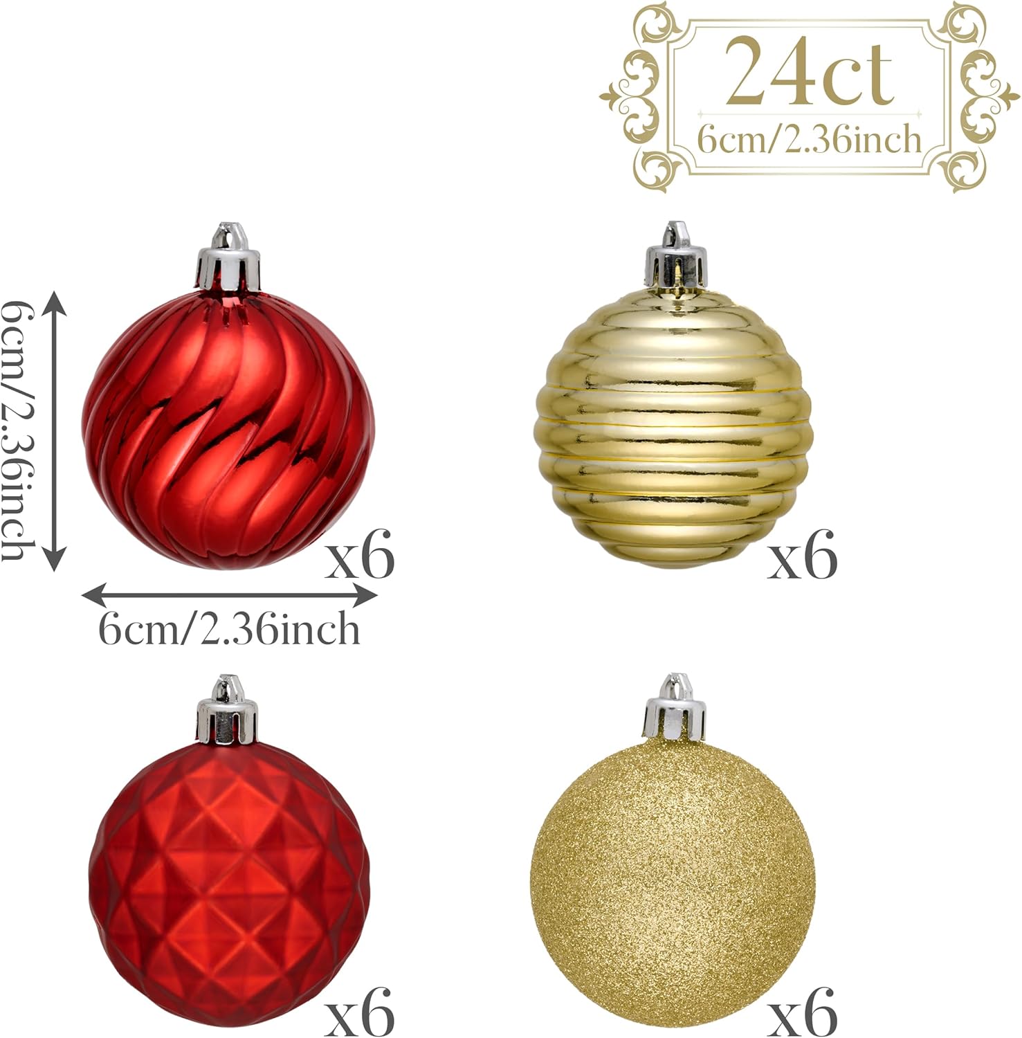 Valery Madelyn Christmas Ornaments Tree Decorations Set for Fall Halloween, 24ct Red Gold Shatterproof Ball Ornaments, 2.36" Hanging Ornament Bulk for Xmas Holiday Party Decor