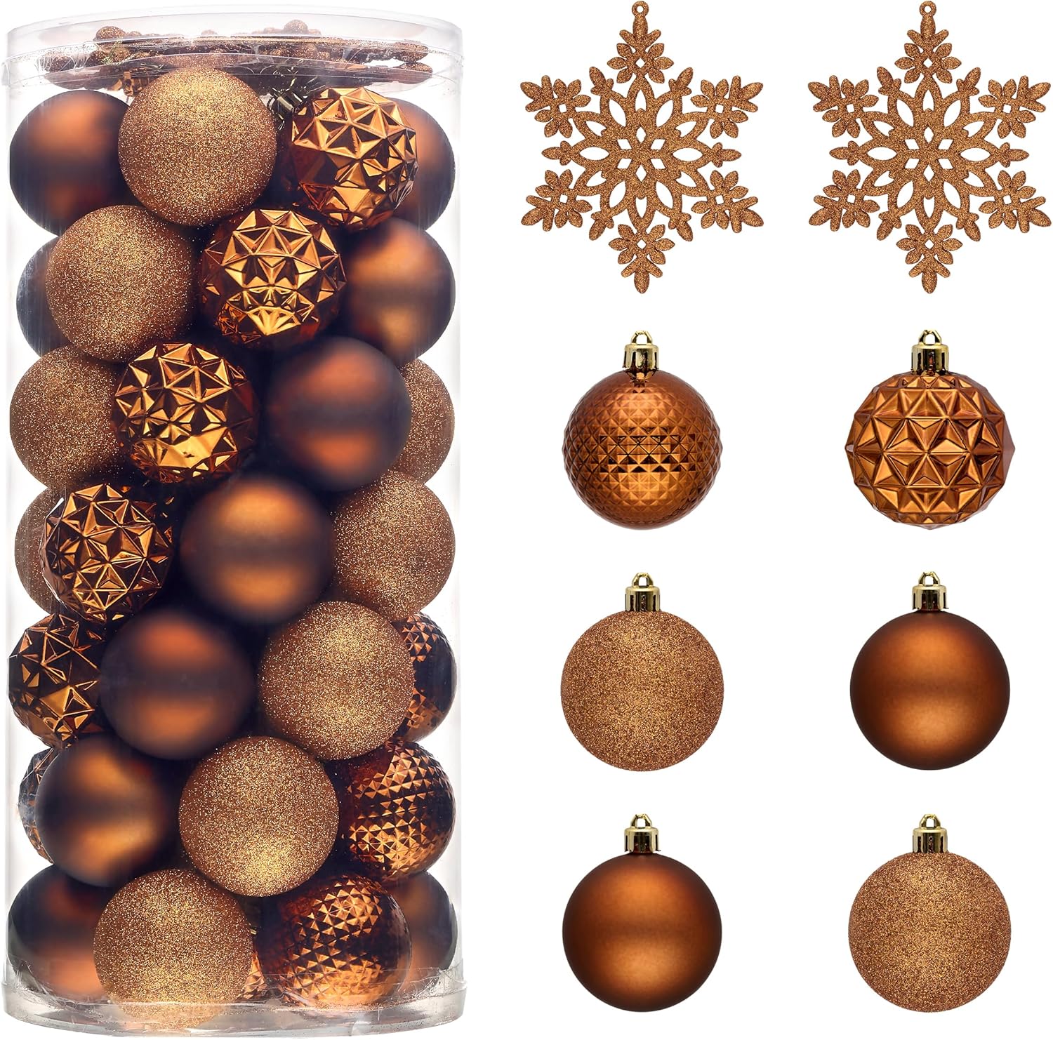 Valery Madelyn Christmas Tree Decorations Ornament Set for Fall Halloween, 50ct 2.36 Inches Bronze Copper Brown Shatterproof Christmas Ball Ornaments Hanging Xmas Holiday Party Decor