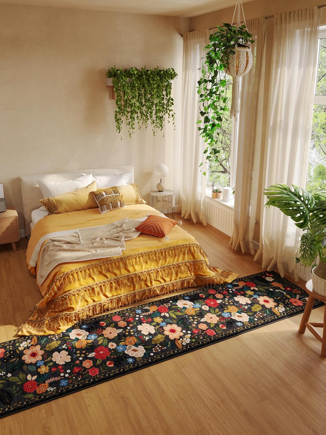 Runners for Hallways Kitchen Rug Non Slip 2'x 10' Long Washable Runner Rugs with Rubber Backing Soft Floral Carpet Runner for Hallways, Kitchen, Laundry, Bedroom, Bathroom(Black)