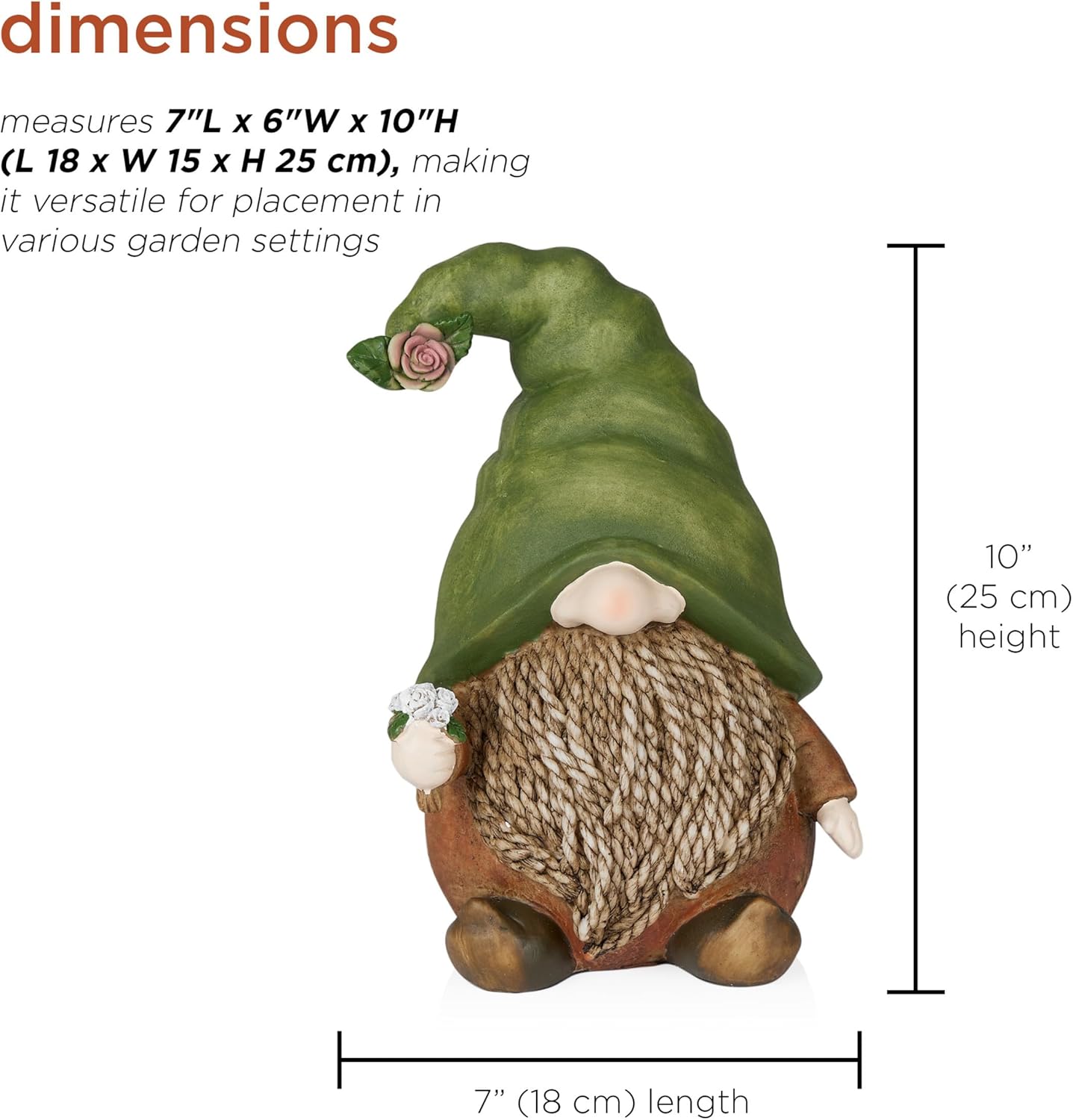 • CUTE GARDEN DECOR: This sweet gnome is topped with a green hat and holds a cute flower, showcasing nature-inspired charm