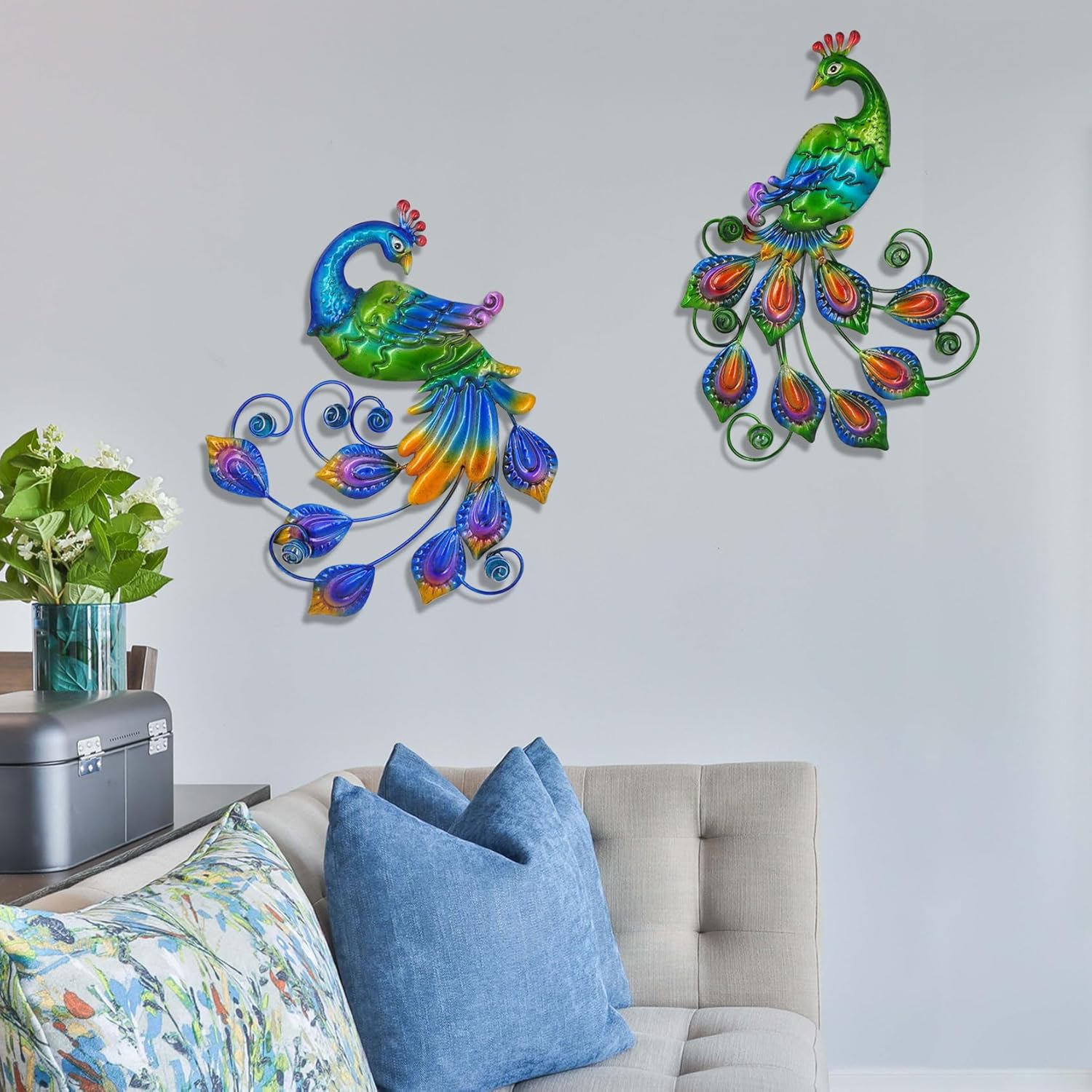 - 【 Widely used 】 These peacock art decorations can be used indoors and outdoors, such as living rooms, bedrooms balconies courtyards gardens backyard decorations, fences wall decorations etc