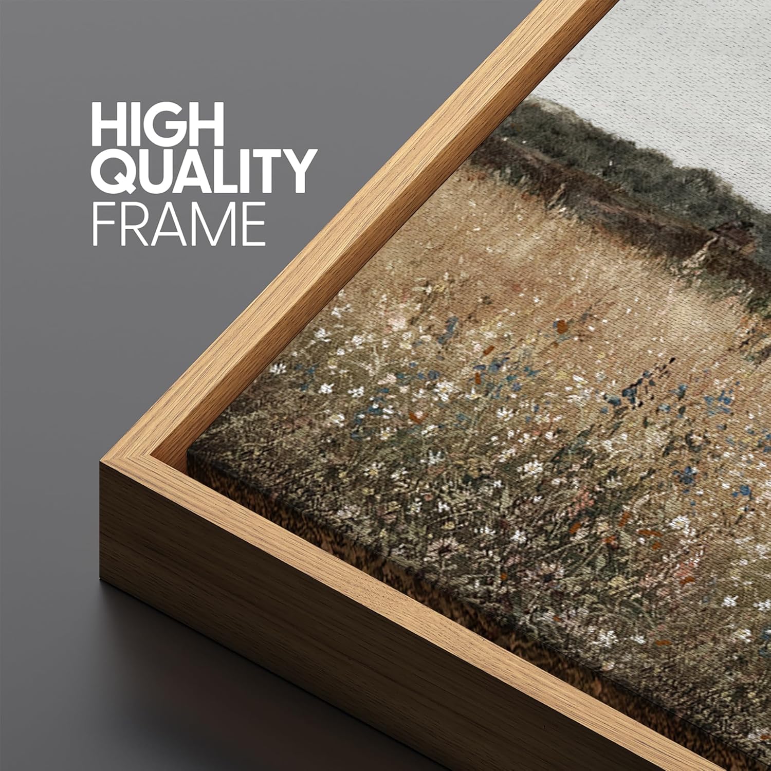 MUDECOR Extra Large Framed Canvas Print Wall Art Misty Morning Meadow with Wildflowers Antique Retro Fine Art Illustrations Decorative Colorful for Bedroom - 60"x30"