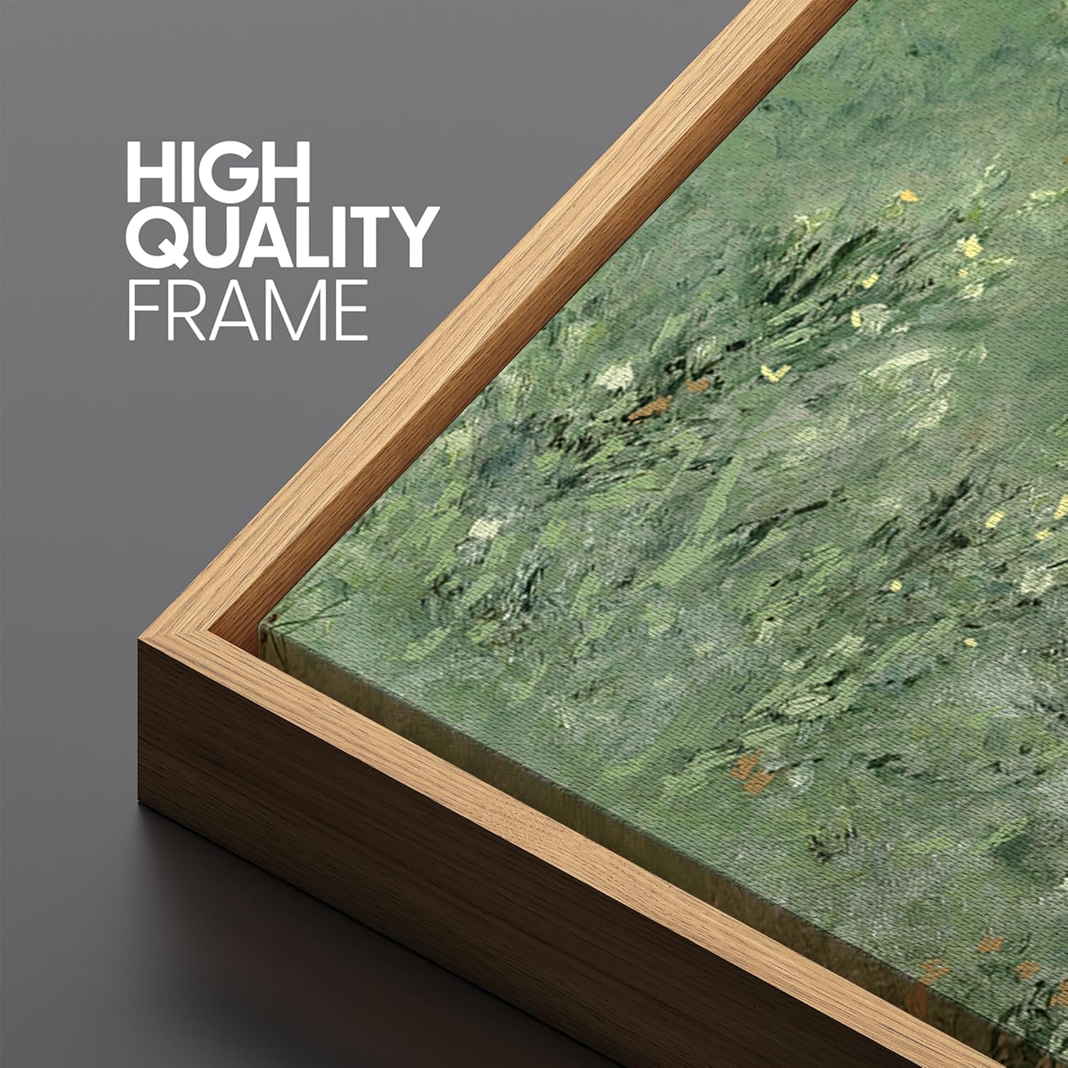 MUDECOR Extra Large Framed Canvas Print Wall Art Meadow's Embrace Impressionist Wildflower Antique Retro Fine Art Illustrations Decorative Colorful for Bedroom - 60"x30"