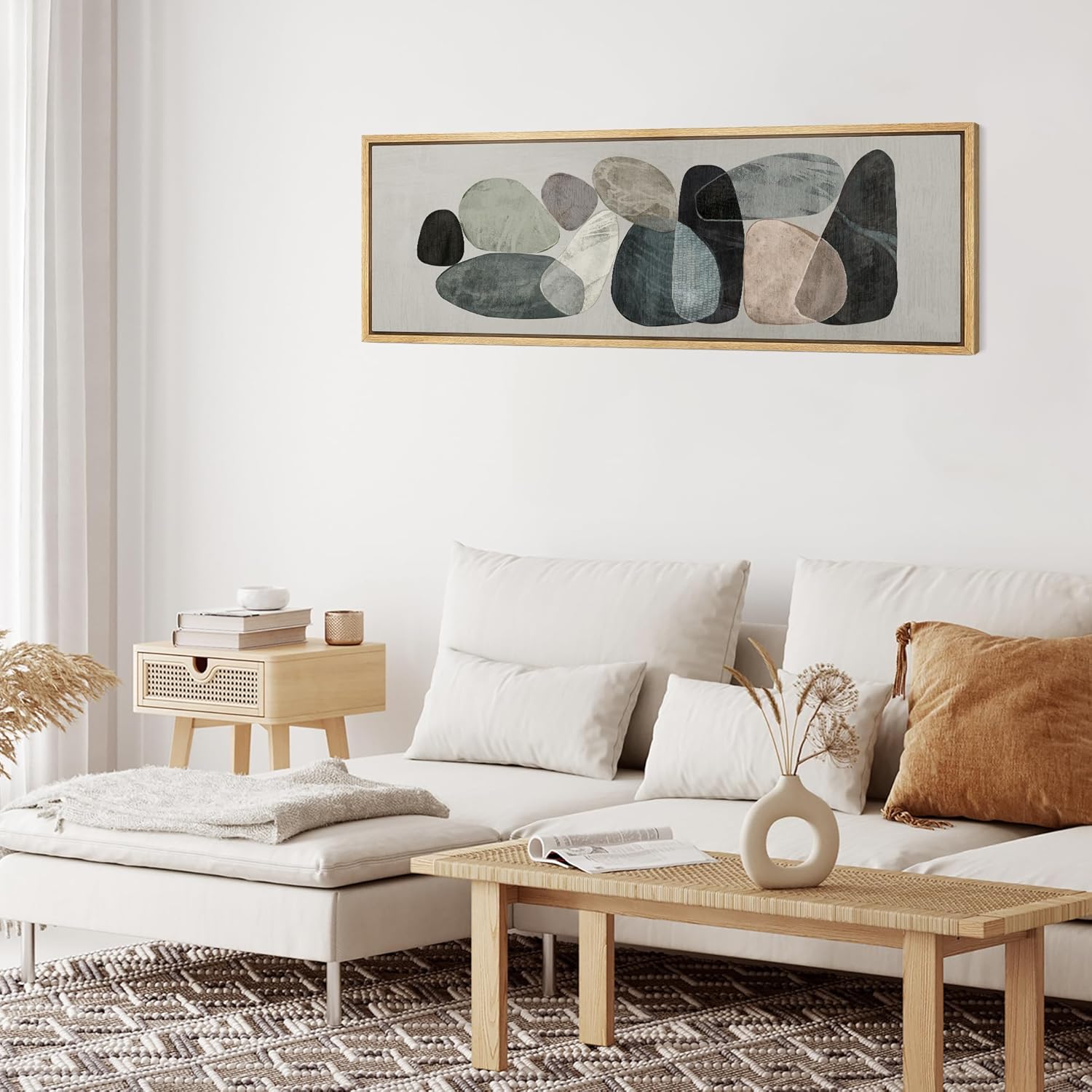 MUDECOR Large Framed Canvas Print Wall Art Abstract Elegance Contemporary Stone Shapes Illustrations Antique Retro Fine Art Illustrations Decorative Colorful for Bedroom - 60"x20"