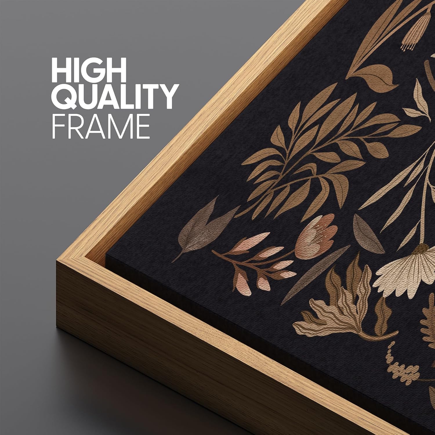 MUDECOR Large Framed Canvas Print Wall Art Botanical Elegance Dark Floral Illustrations Antique Retro Fine Art Illustrations Decorative Colorful for Bedroom - 60"x20"