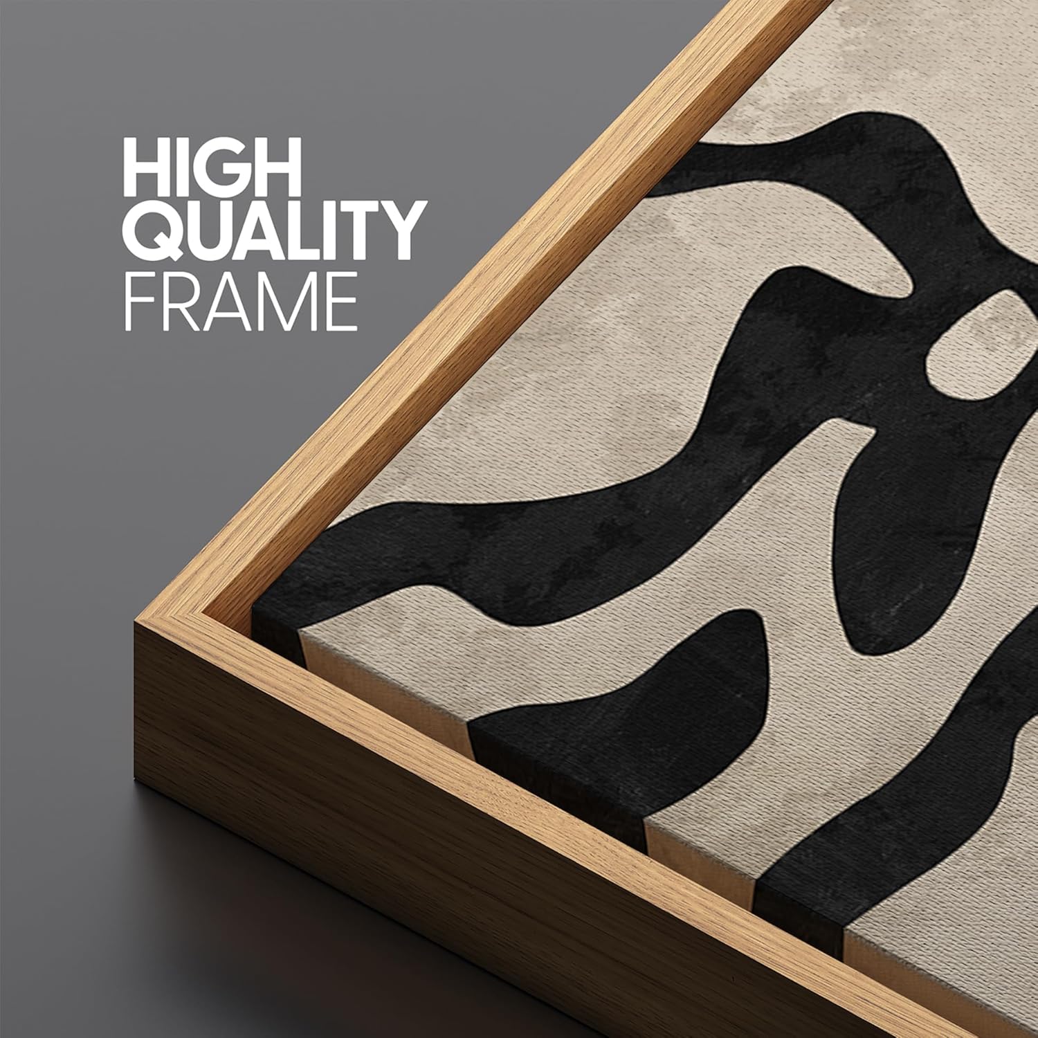 MUDECOR Extra Large Framed Canvas Print Wall Art Abstract Contours Black and White Illustrations Antique Retro Fine Art Illustrations Decorative Colorful for Bedroom - 60"x30"