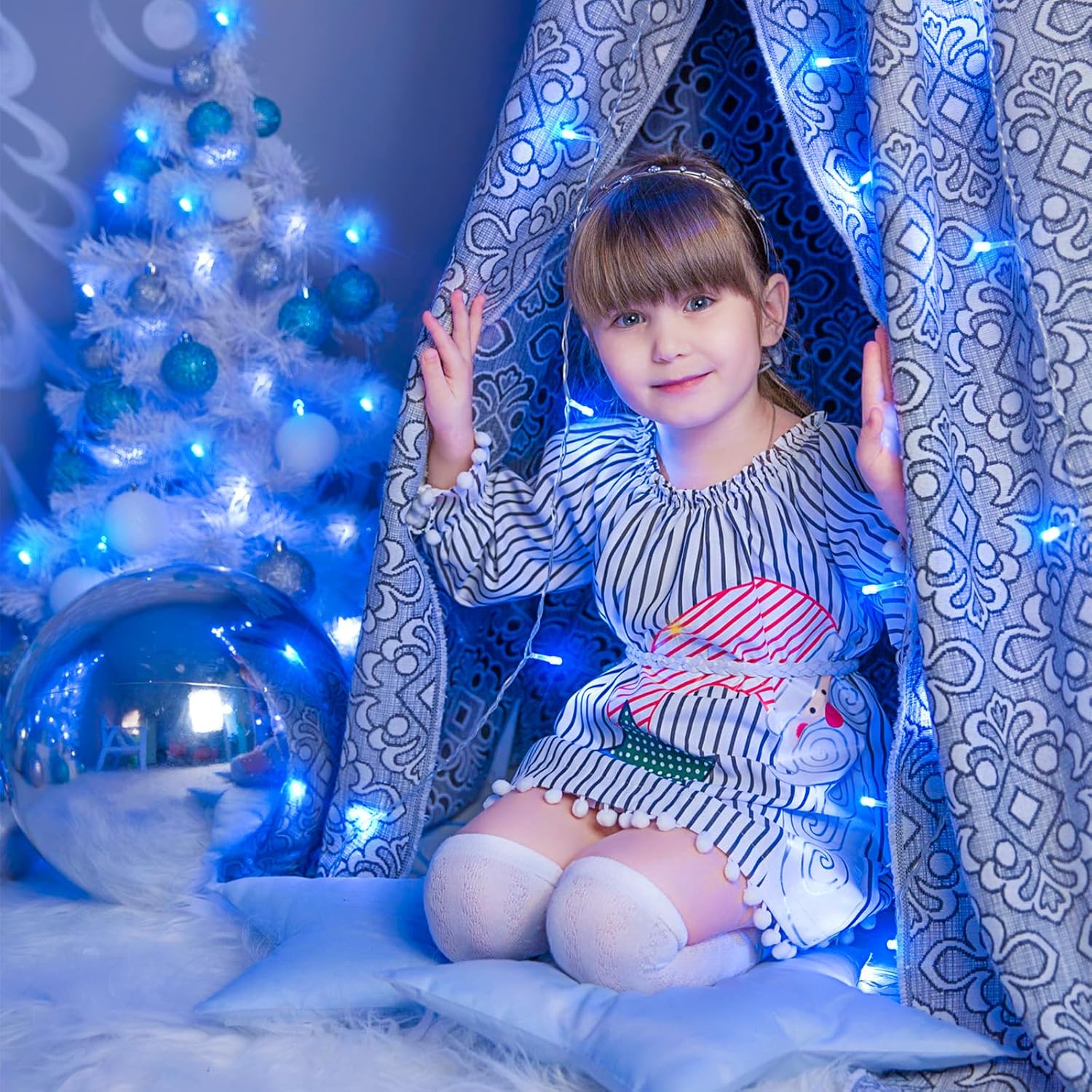 • Waterproof Fairy Lights: The blue Christmas lights design with IP44 outdoor waterproof, can withstand wind, snow, rain and extreme weather. String lights are equipped with a UL certified 29V low-voltage plug ensures the safety. It's safe for family with kids or pets!